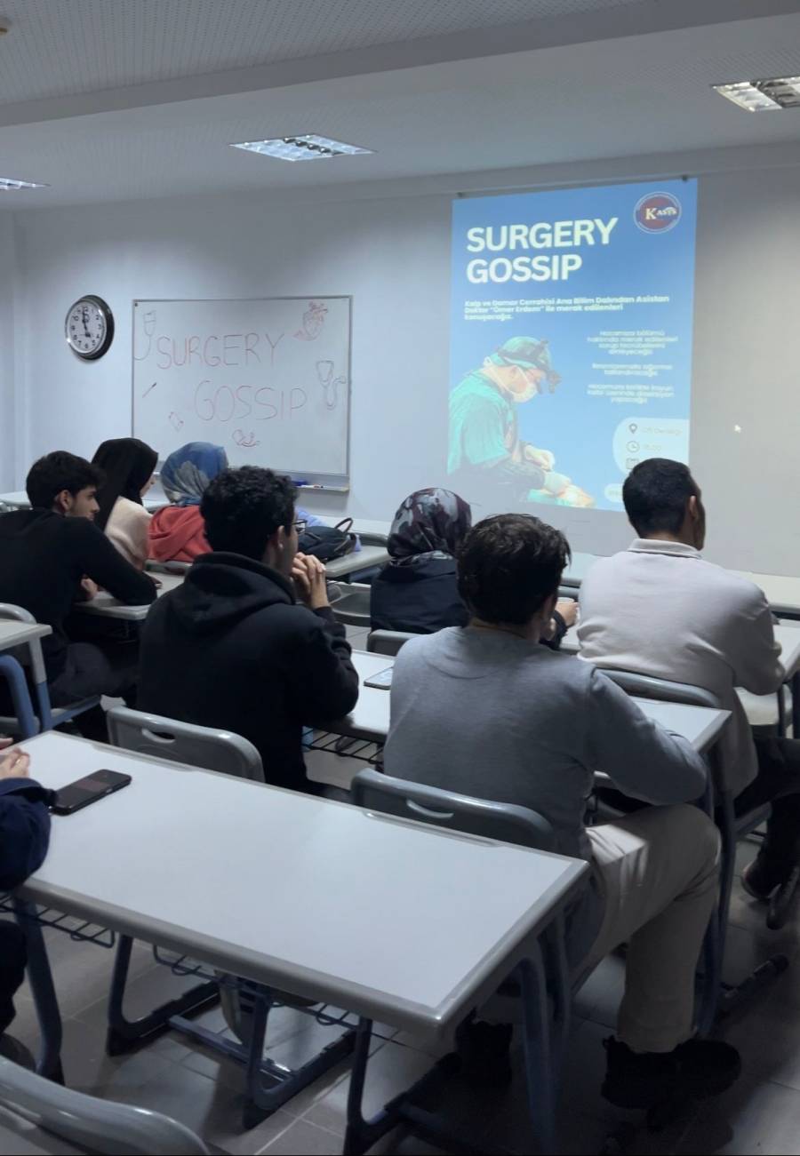 Fakültemiz öğrenci kulüplerinden KASIS üyeleri tarafından, 9 Aralık 2025 tarihinde 16.30-18.00 saatleri arasında Asistan Dr. Ömer ERDEM’in katılımıyla "Surgery Gossip" temalı etkinlik düzenlendi.