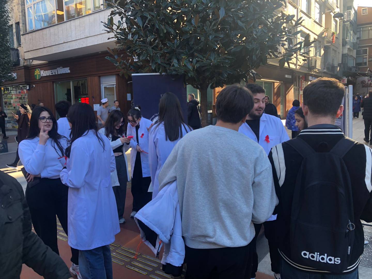 Fakültemiz öğrencileri, AIDS’e karşı toplumda farkındalığı artırmak amacıyla sahada bilgilendirme etkinliği düzenledi. Geleceğin doktorları, HIV/AIDS konusunda doğru ve güncel bilgiye erişimi desteklemek için vatandaşlarla birebir iletişim kurdu.