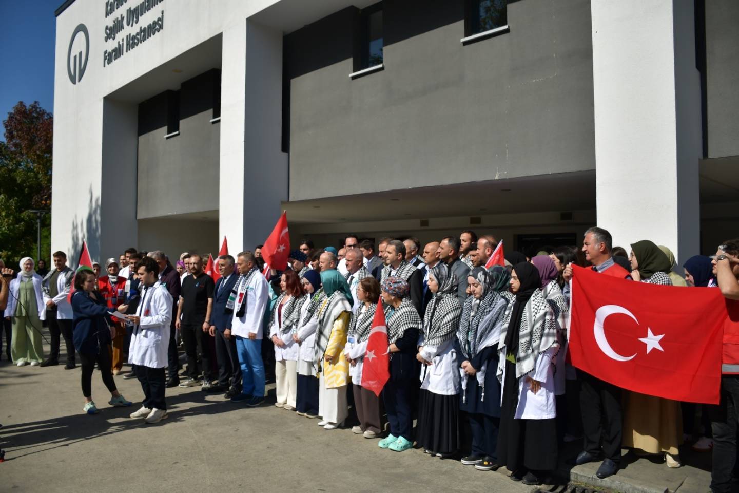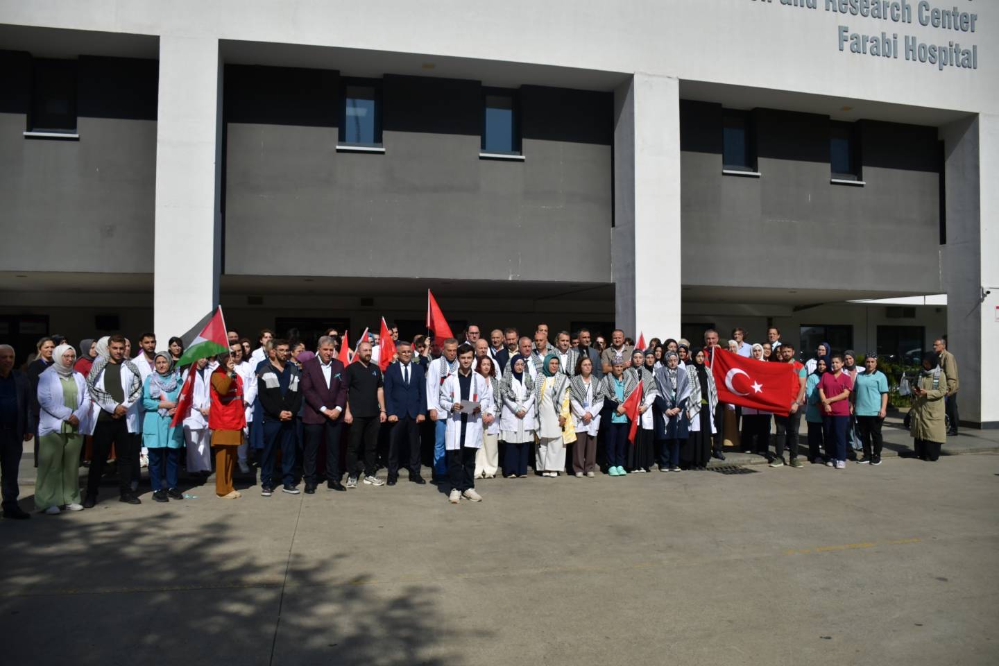 Gazze’de yaşanan katliamın ikinci yılı dolayısıyla 7 Ekim 2025 tarihinde saat 12.30’da Karadeniz Teknik Üniversitesi (KTÜ) Farabi Hastanesi önünde anlamlı bir basın açıklaması gerçekleştirildi.