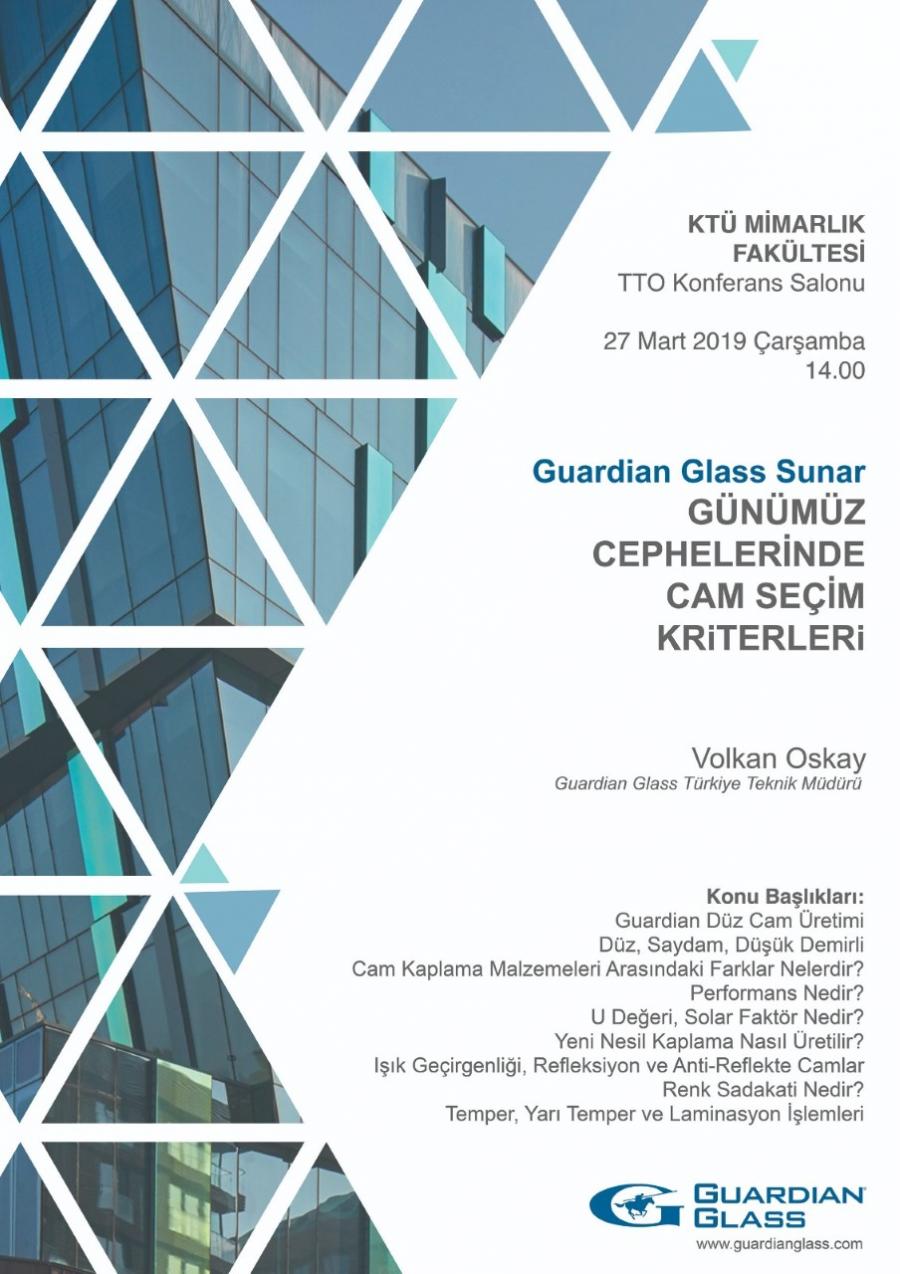 27 Mart 2019 Çarşamba Günü Saat 14.00'da Guardian Glass Semineri