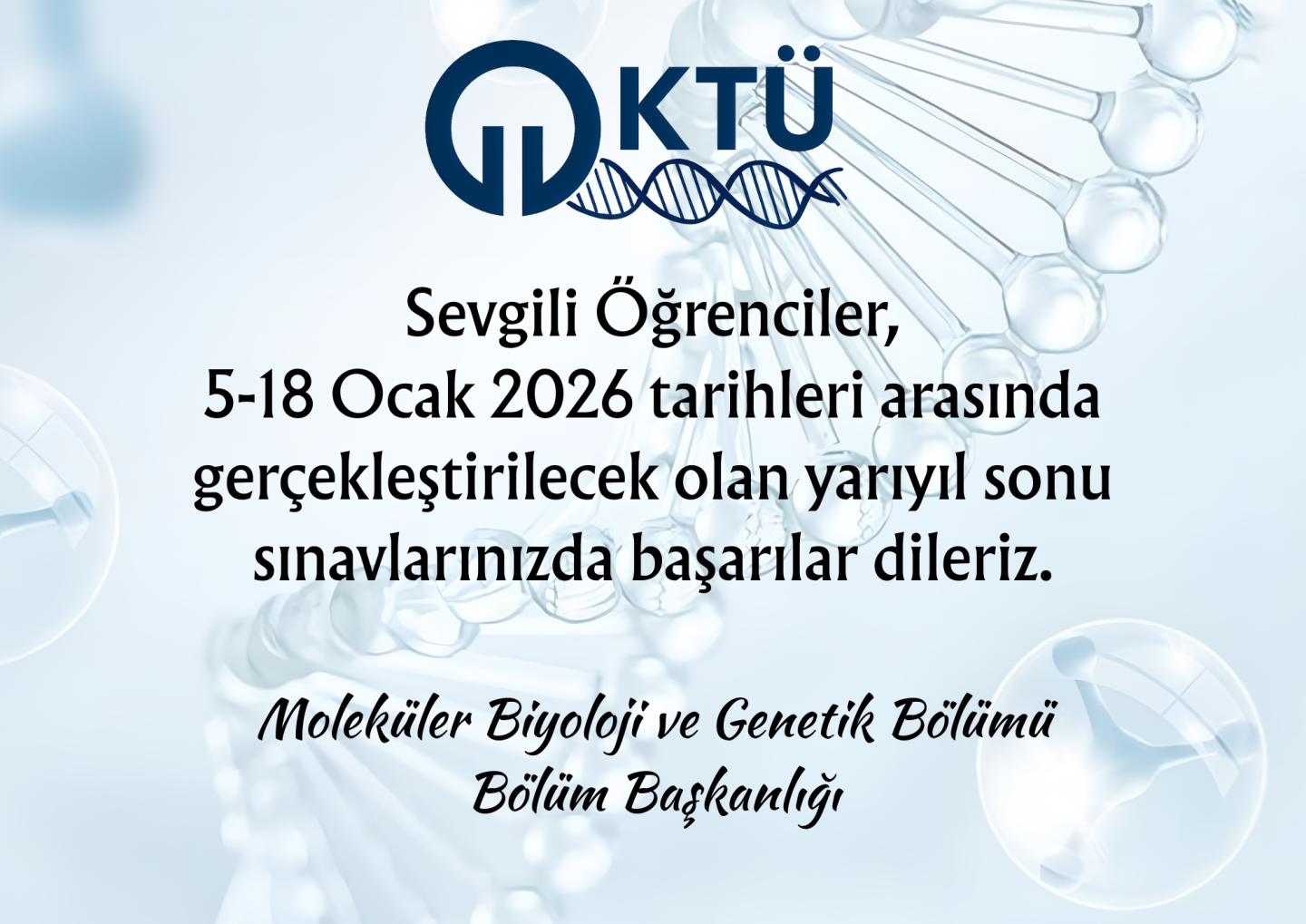 Karadeniz Teknik Üniversitesi Moleküler Biyoloji ve Genetik Bölümü tarafından, 2025 yılı sonu değerlendirme toplantısı gerçekleştirildi.