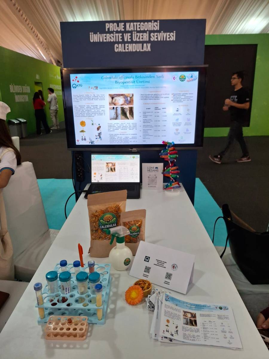 Takım, Calendula officinalis (Aynısefa) bitkisinden geliştirdikleri yerli biyopestisit projesi ile sürdürülebilir tarım ve çevre dostu üretim ilkelerini merkeze alan yenilikçi bir yaklaşım ortaya koydu. Doğal bileşenlerden elde edilen biyopestisit, kimyasal pestisitlere alternatif oluşturmayı ve ekosisteme zarar vermeden zararlı kontrolü sağlamayı hedefliyor.