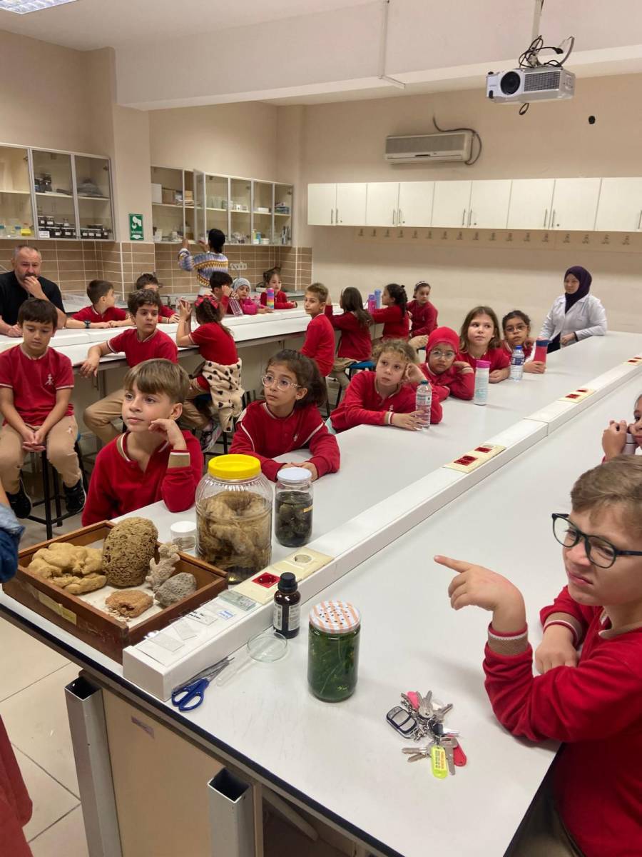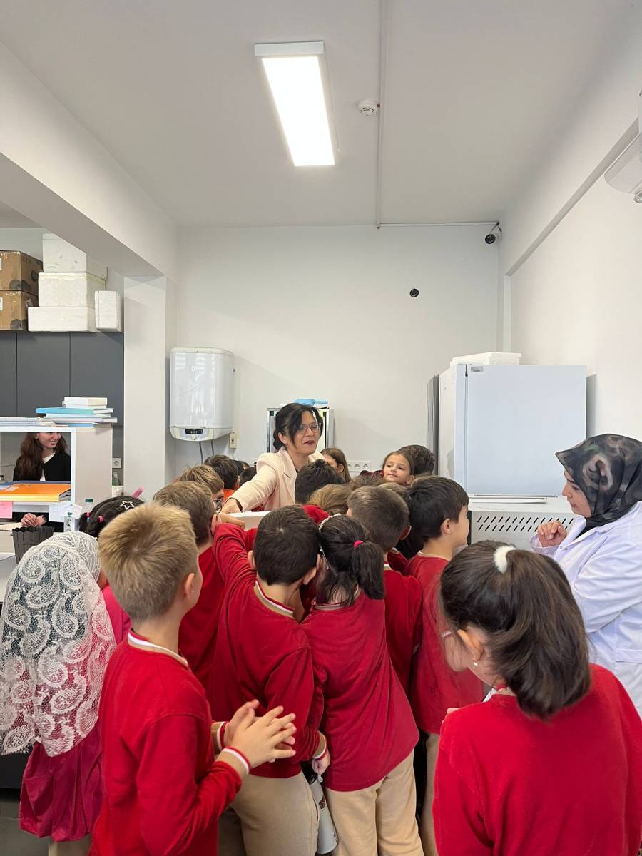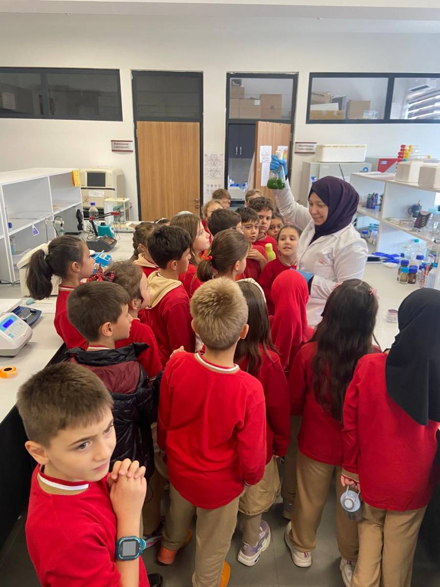 Küçük misafirler, mikroskop altında hücreleri inceleme, DNA örneklerini görme ve laboratuvar cihazlarını tanıma fırsatı buldular. Bilimsel deneylerin nasıl gerçekleştirildiğini büyük bir merak ve heyecanla gözlemleyen öğrenciler, araştırma ortamına duydukları ilgiyi keyifli bir şekilde dile getirdiler.