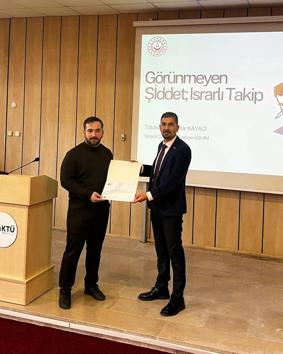 Seminerde, Trabzon Aile ve Sosyal Hizmetler İl Müdürlüğü Sosyal Hizmet Uzmanı Tolunay Bayraktar Kayacı, ısrarlı takibin tanımı, bireyler üzerindeki psikolojik ve sosyal etkileri ile bu durum karşısında izlenebilecek hukuki ve sosyal destek mekanizmaları hakkında katılımcılara kapsamlı bilgiler sundu. Katılımcıların sorularının da yanıtlandığı etkinlikte, konunun toplumsal boyutuna dikkat çekildi.