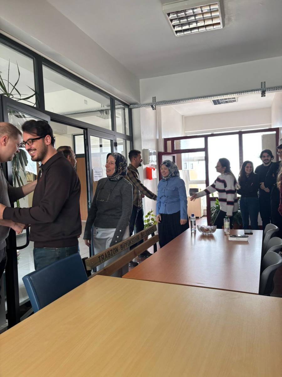 Karadeniz Teknik Üniversitesi Moleküler Biyoloji ve Genetik Bölümü’nde Ramazan Bayramı dolayısıyla bayramlaşma programı düzenlendi. Akademik ve idari personelin yanı sıra öğrencilerin de katılım sağladığı etkinlikte, bayramın birlik ve beraberlik ruhu hep birlikte paylaşıldı. A3.H3.4.PG3.4.5 Biriminiz Çalışanlarına yönelik düzenlenen sosyal, kültürel ve sportif etkinlik kapsamında bölümde gerçekleştirilen programda katılımcılar bir araya gelerek bayramlaştı, karşılıklı iyi dileklerde bulunuldu. Samimi bir ortamda gerçekleşen etkinlik, bölüm içindeki dayanışma ve iletişimin güçlenmesine katkı sağladı.