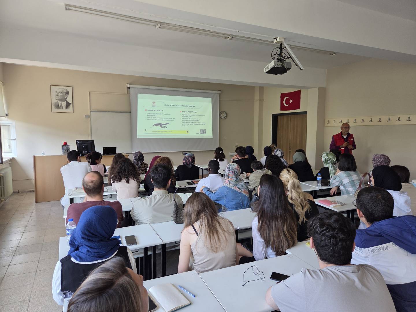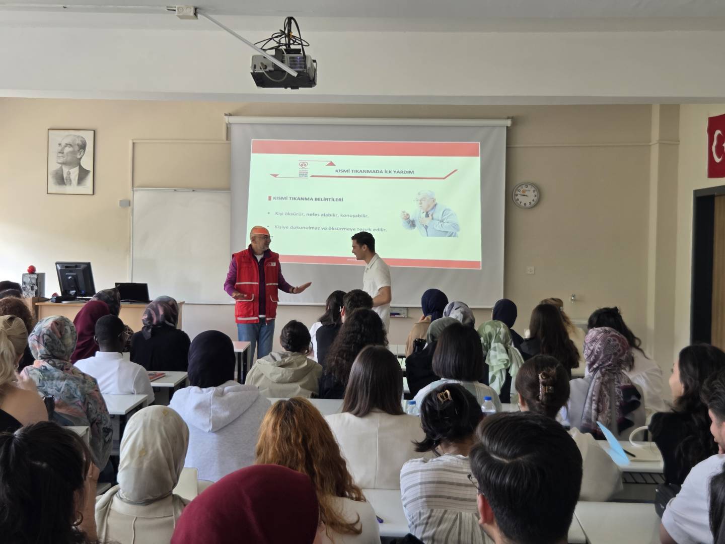 Eğitim süresince katılımcılar, ilk yardımın temel prensipleri hakkında teorik bilgi edinmenin yanı sıra uygulamalı çalışmalar yaparak pratik becerilerini geliştirme fırsatı buldular. Böylece, hem akademik yaşamda hem de günlük hayatta karşılaşılabilecek acil durumlara karşı bilinçli ve doğru müdahale etmenin önemi bir kez daha vurgulandı.