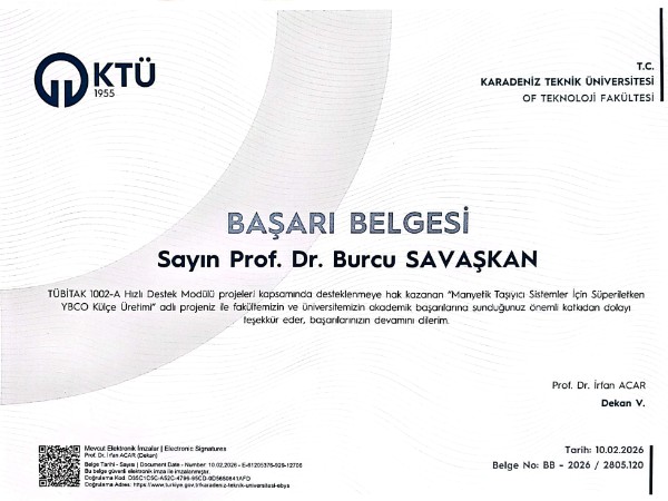Fakültemiz öğretim üyelerinden Prof. Dr. Burcu SAVAŞKAN, TÜBİTAK 1002-A Hızlı Destek Modülü kapsamında önemli bir başarıya imza attı.
