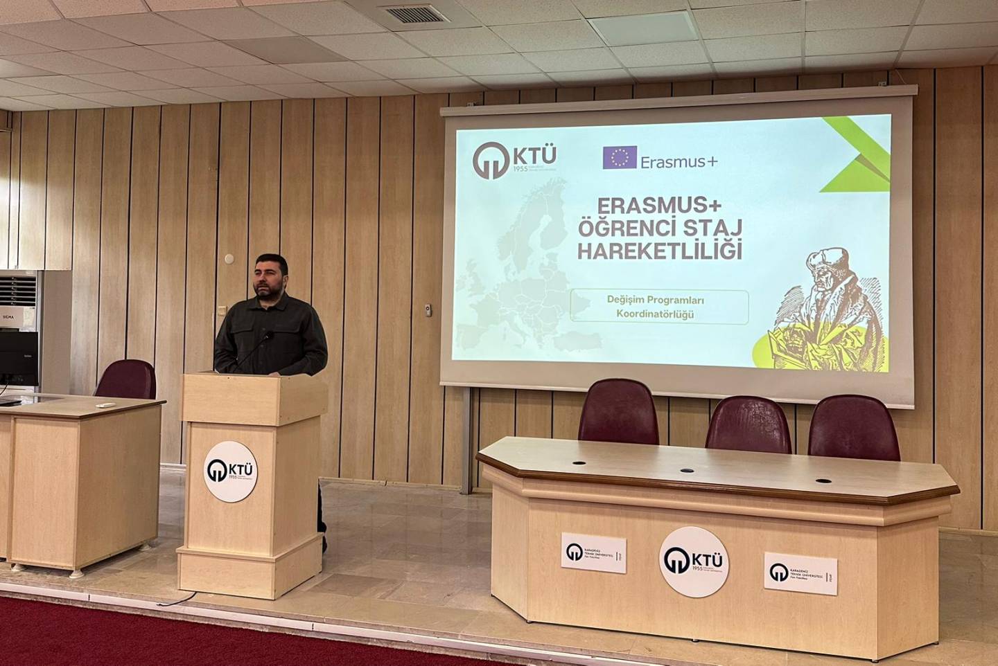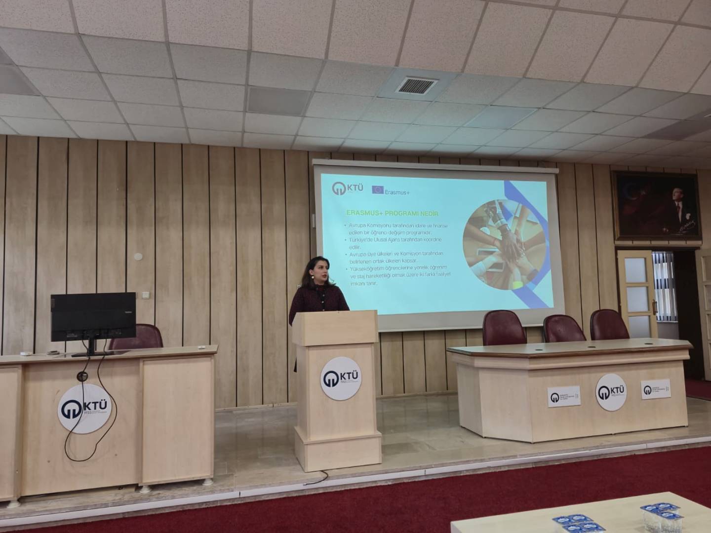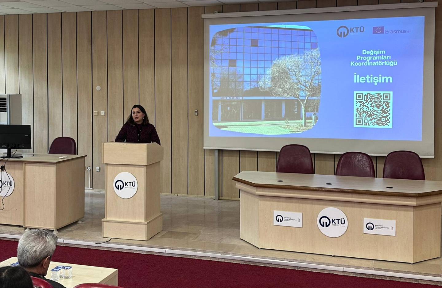 KTÜ Değişim Programları Koordinatörlüğü tarafından Matematik Bölümü'nün daveti ve organizasyonuyla Nazım Terzioğlu Amfisi'nde ilgili bölümün öğrencilerine yönelik olarak Erasmus+ Tanıtım Toplantısı düzenlendi. Toplantıda Erasmus+ Öğrenci Öğrenim Hareketliliği sunumu koordinatörlük ekibinden Öğr. Gör. Zehra ŞAHİN BEKTAŞ,  Erasmus+ Öğrenci Staj Hareketliliği sunumu Öğr. Gör. Şener KARAOSMANOĞLU tarafından ve Erasmus+ Blended Intensive Programme (BIP) sunumu Öğr. Gör. Onur AYDIN tarafından gerçekleştirildi. Toplantı bitiminde öğrencilerin soruları cevaplandı. Toplantıya katılan Matematik bölümü öğrencilerine ve öğretim üyelerine teşekkür ederiz.