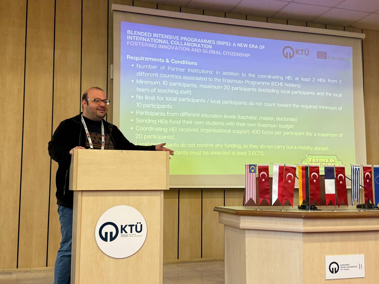On November 6, 2025, Office of Exchange Programmes gave introductory presentations to participants about "Erasmus+ Blended Intensive Programmes" and "Erasmus+ Youth Exchanges." Furthermore, Deputy Coordinator of International Relations, Assist. Prof. Dr. Hasan Islam COPUROGLU made two presentations on "An Academic Journey: Erasmus+ and Beyond" and "Sustainability in Erasmus+." Following these presentations, presentations were given by the students themselves detailing their Erasmus+ experiences and ESN Trabzon made a presentation to introduce their student network. On the same day, representatives from participating higher education institutions visited the Medical Device Design and Manufacturing Research and Application Center and the Pharmaceutical and Pharmaceutical Technology Application and Research Center of Karadeniz Technical University.