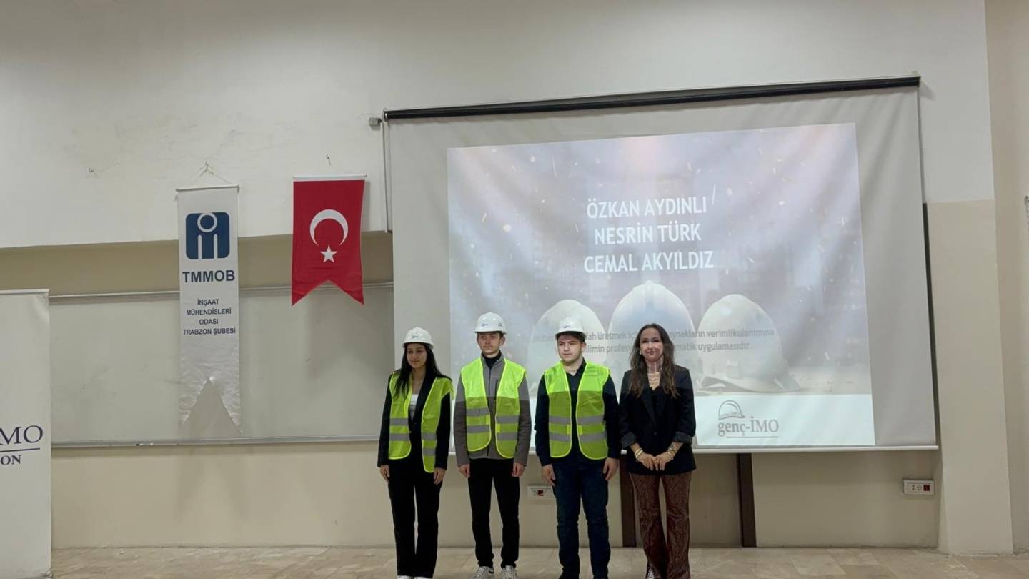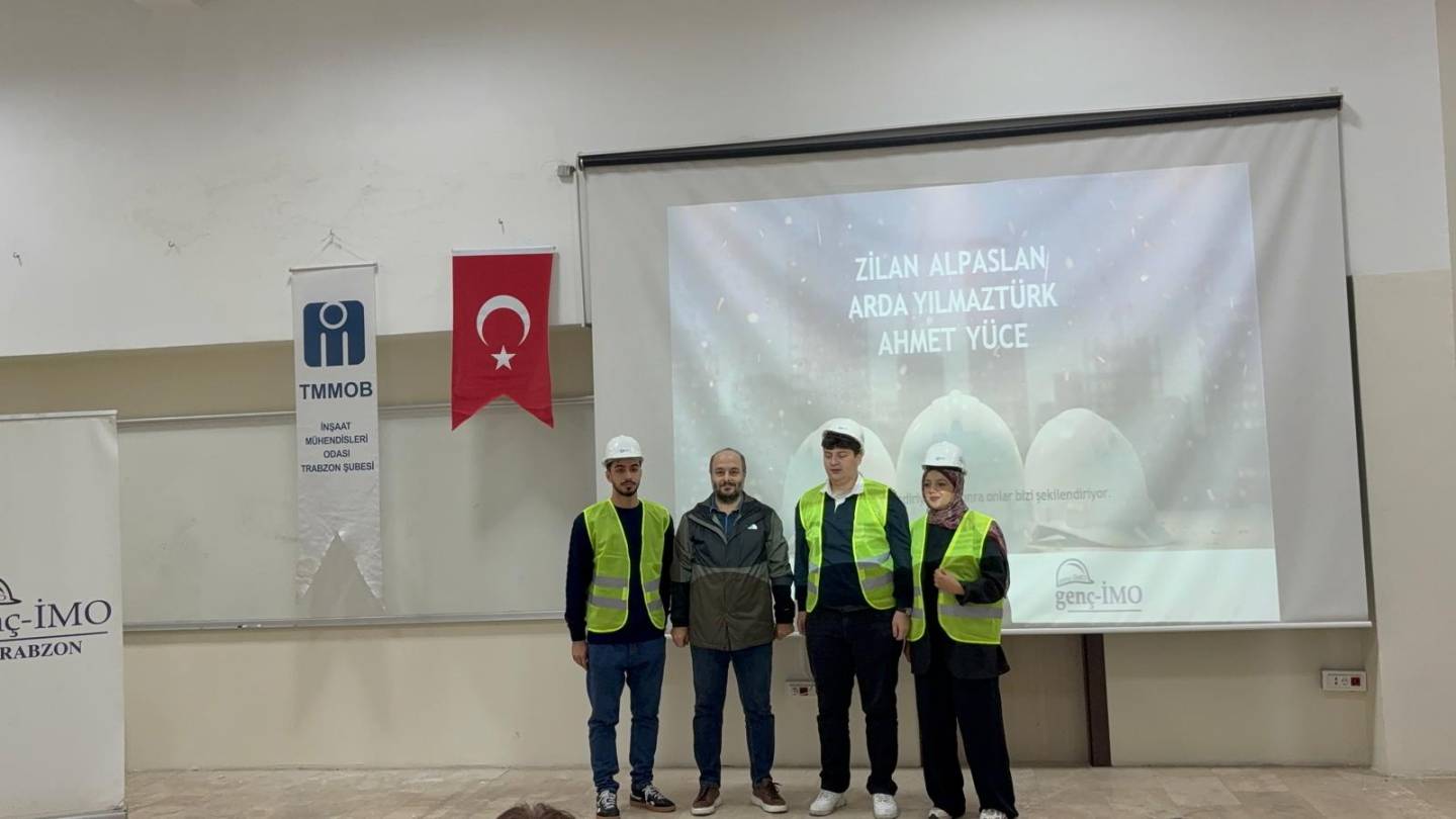 İMO Trabzon Şubesi Yönetim Kurulu Üyesi Zehra Gül Turhan inşaat mühendisi olmanın sorumluluğu ve önemine dair kısa bir konuşma gerçekleştirmiştir. Etkinlik 1.sınıf öğrencilerine baret takılmasıyla tamamlanmıştır.