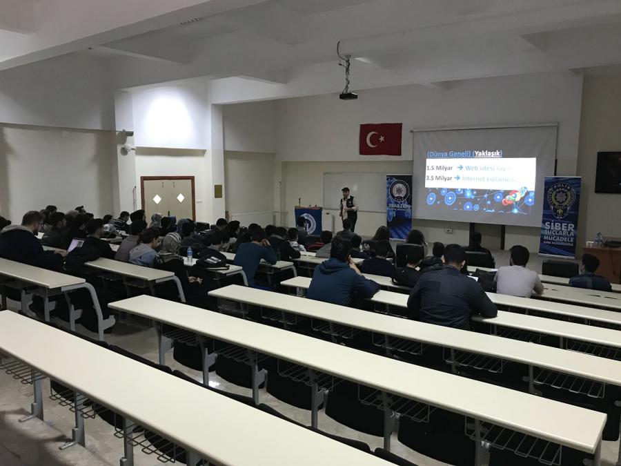 Trabzon emniyet müdürlüğü siber suçlarla mücadele biriminden fakültemiz öğrenci, akademik ve idari personeline yönelik olarak güvenli internet, bilişim suçları ve siber güvenlikle işgili seminer verildi. Çok verimli geçen seminer için il emniyet müdürlüğümüze ve sunumları yapan değerli personeline fakültemiz adına teşekkür ederiz.