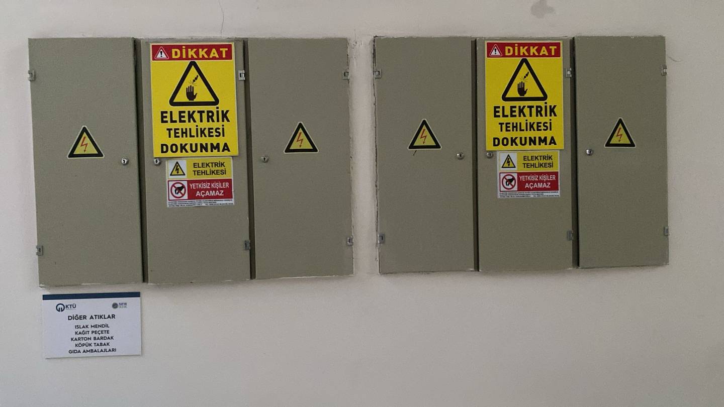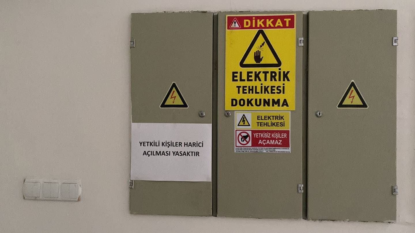 Binalarımızın içerisinde bulunan elektrik panolarına "Yetkisiz Kişiler Açamaz" uyarı etiketi yapıştırılarak sorumlu olmayanın müdahale etmesi engellendi.