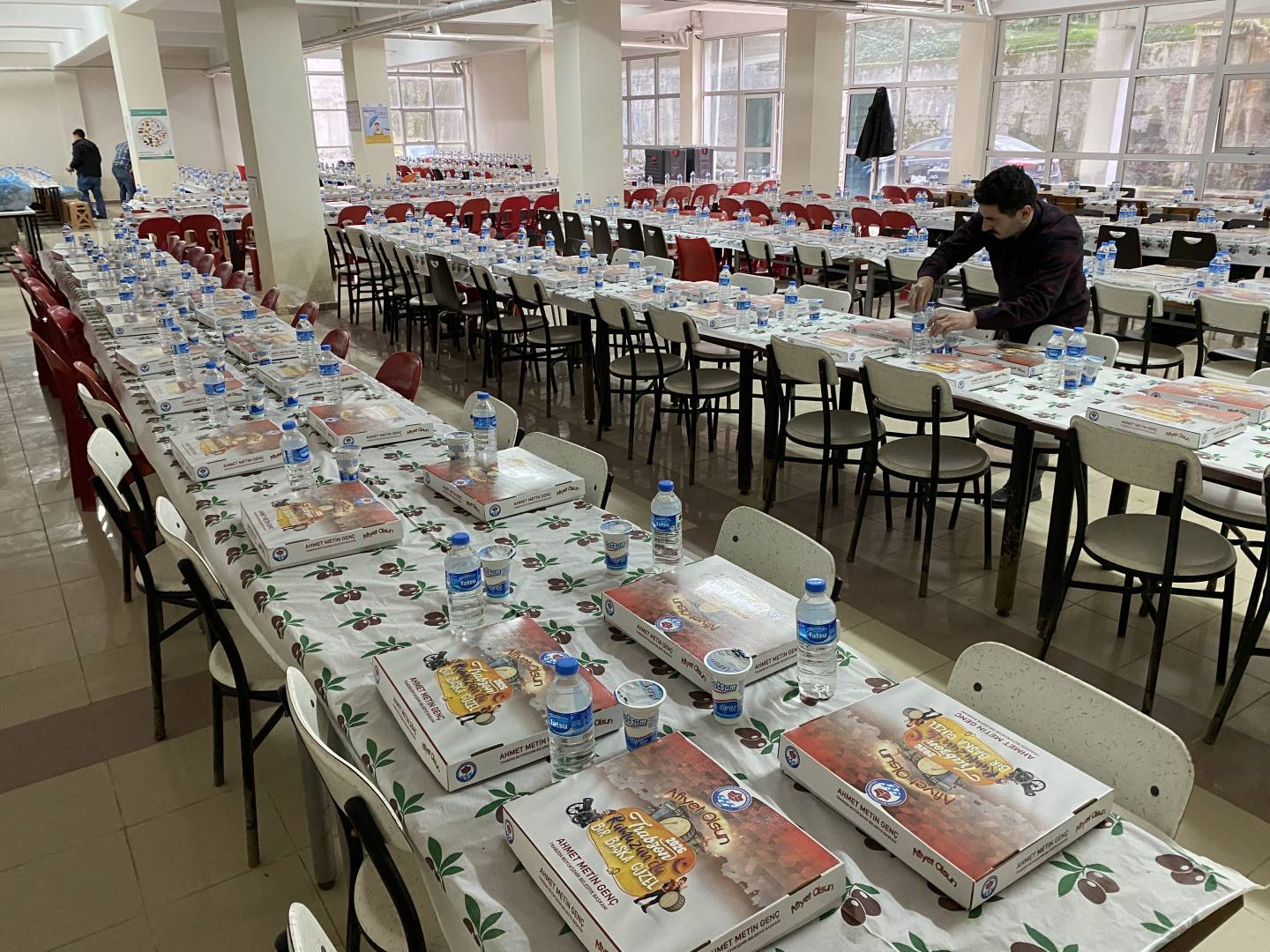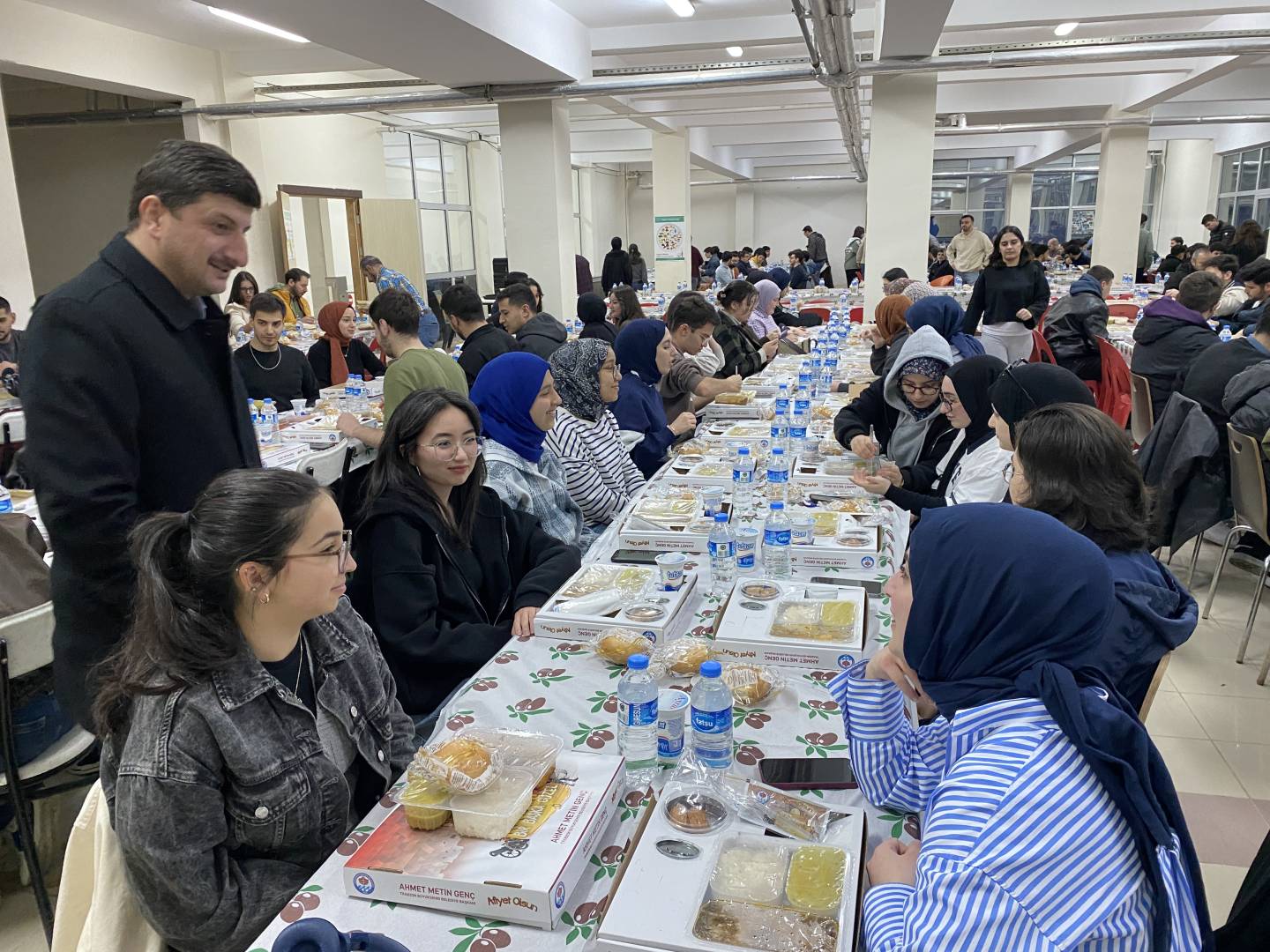 Trabzon Büyükşehir Belediye Başkanlığı'nın destekleriyle fakültemiz öğrencilerine iftar yemeği verildi. Yaklaşık 350 öğrencimizin katıldığı iftar yemeğine Dekanımız Sayın Prof. Dr. İrfan Acar, Üniversitemiz İdari ve Mali İşler Daire Başkanı İsmail Küçük, Yapı İşleri Daire Başkanı Yasin Öztel, Güvenlik ve Koruma Şube Müdürü Hasan Yaman, Fakülte Sekreterimiz Mustafa Yaşar, akademik ve idari personelimiz öğrencilerimizle birlikte iftar açtılar.