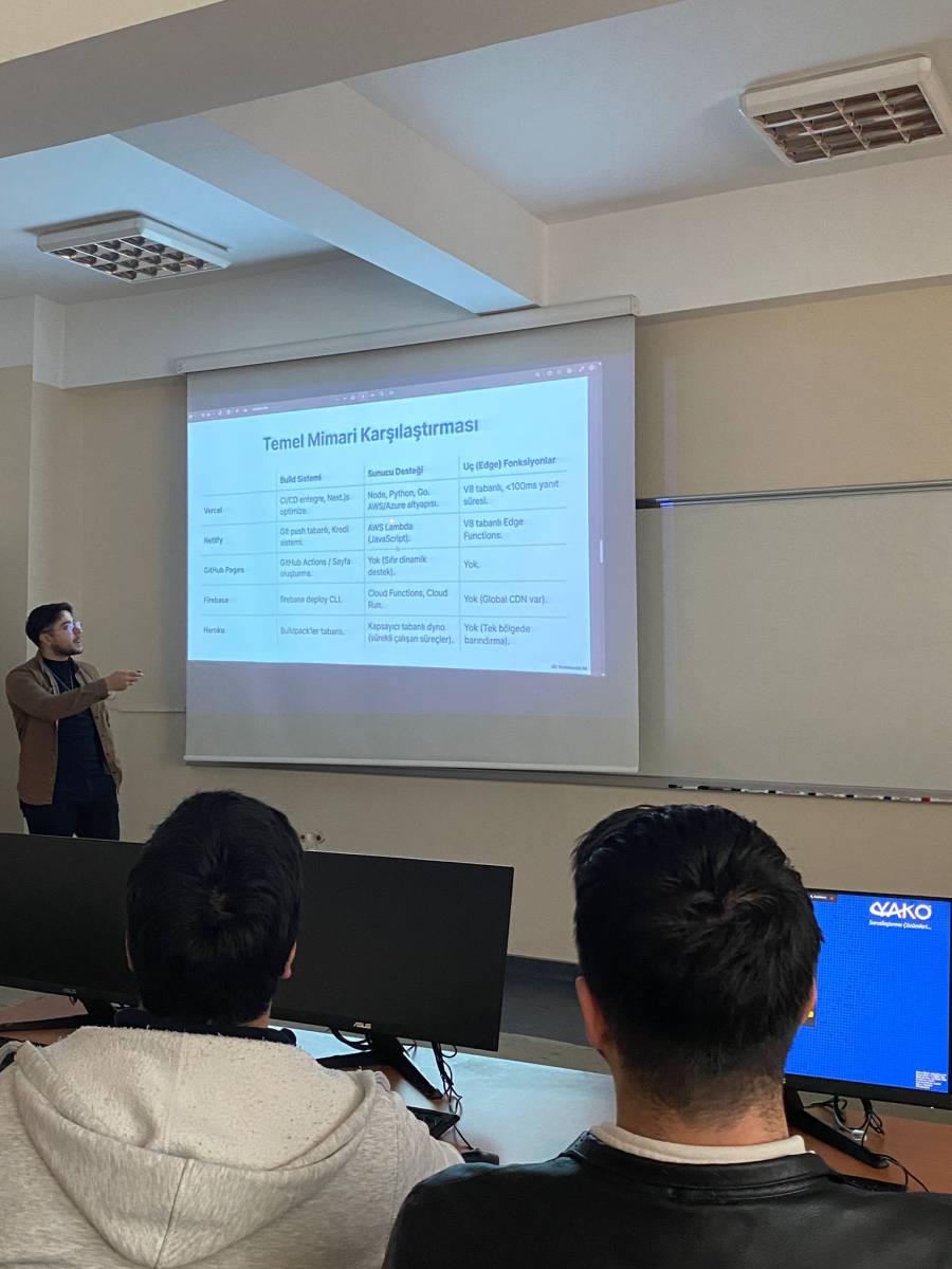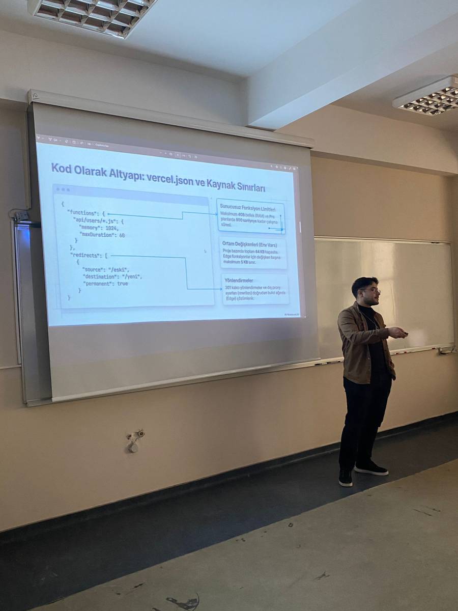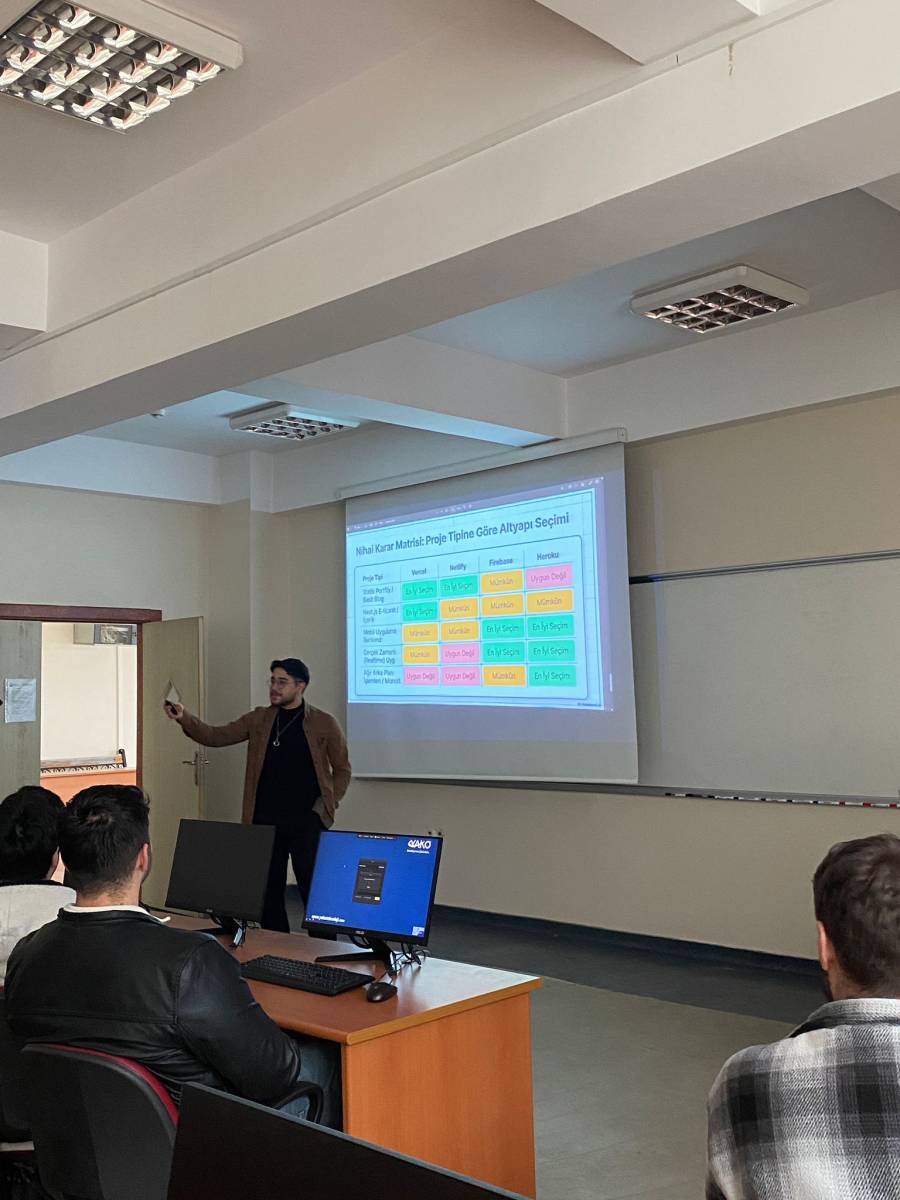 Kıdemli Yazılım Geliştirme Uzmanı Abdullah Uğraşkan ve Yazılım Geliştirici Ömer Yiğit Aker, Yazılım Mühendisliği öğrencileriyle deneyim ve yazılım süreçlerine dair bilgi paylaşmıştır.