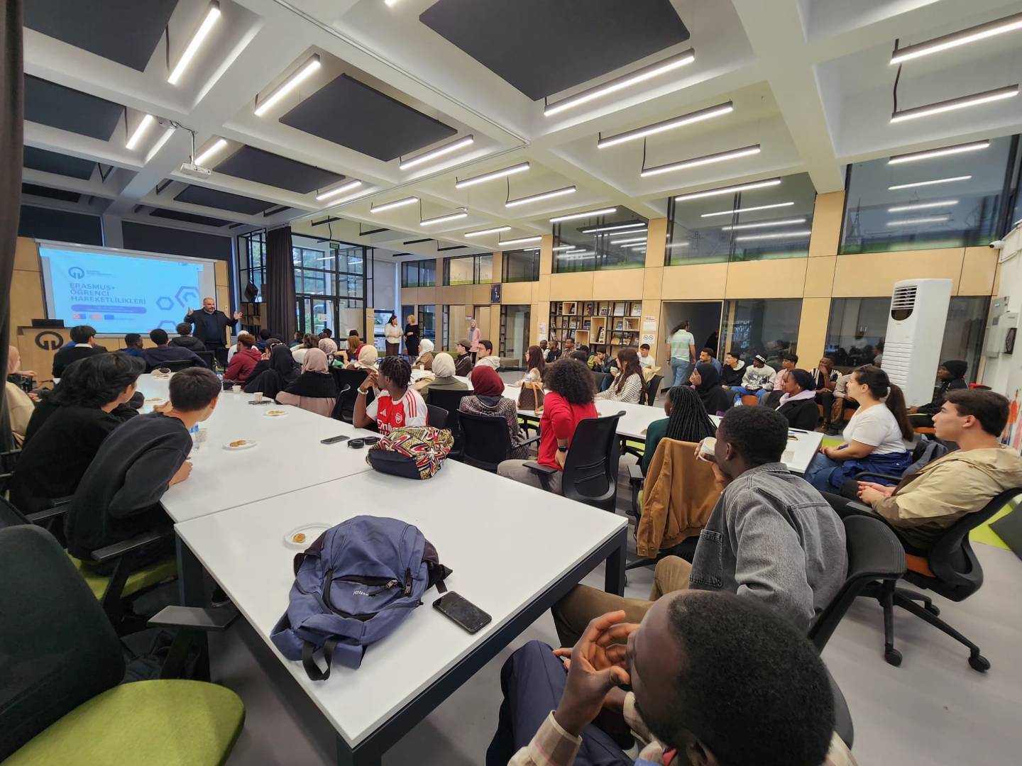 During the meeting, students were informed about the general introduction of our university, the organizational structure of the Office of International Relations, the activities of the Office of International Students, and the Erasmus+ program. Presentations were delivered by the Vice Coordinator of the Office of International Student Affairs, Dr. Fatih YILMAZ, and Lecturer Onur AYDIN, while introductory speeches were made by Coordinator of the Office of International Relations Prof. Dr. Sercan EROL and Coordinator of the Office of International Student Affairs Assoc. Prof. Dr. Tane VERGİLİ.