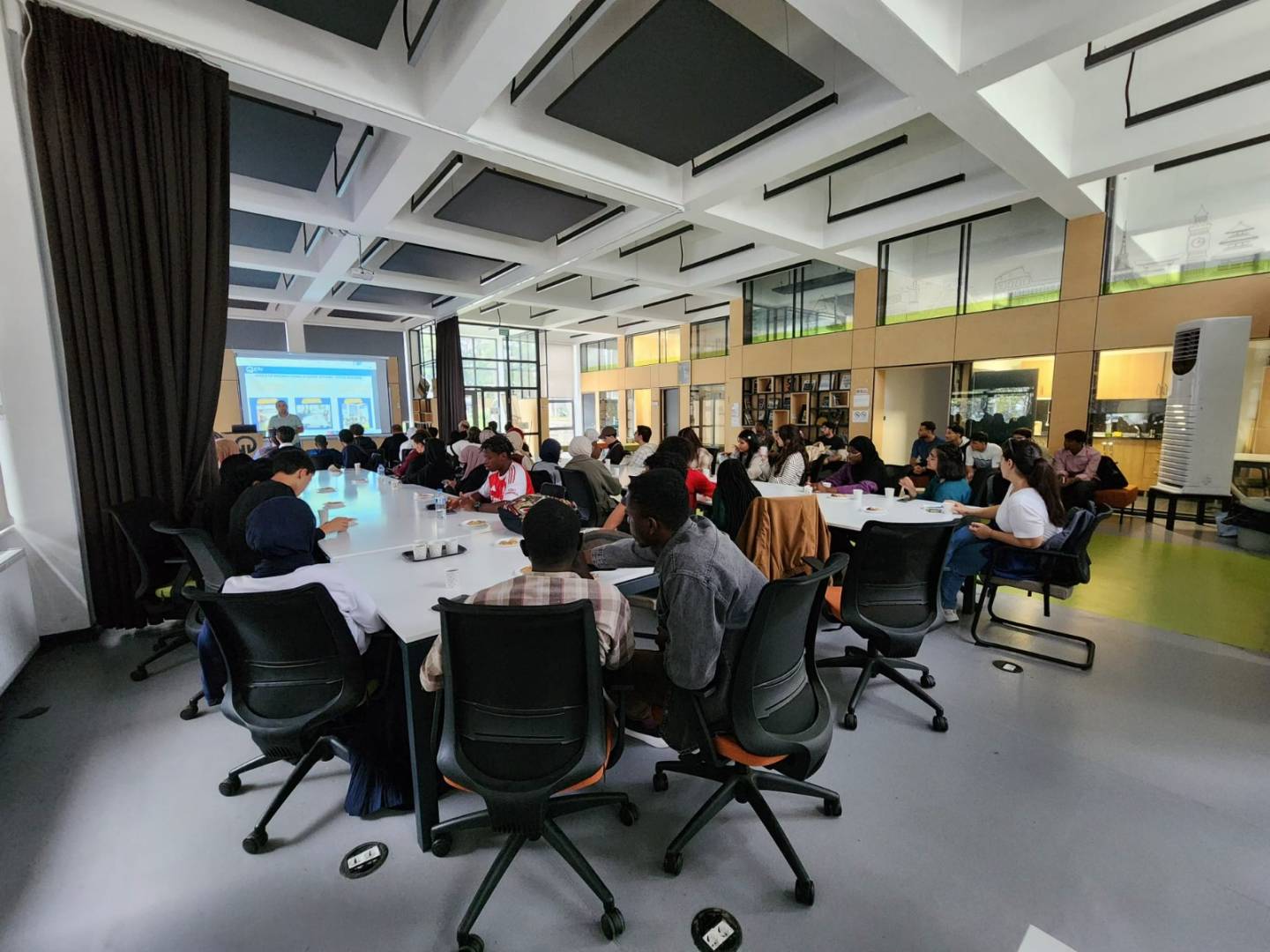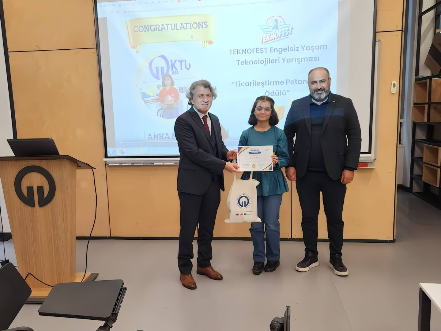 The meeting continued with the presentation of a gift by our Vice Rector Prof. Dr. Ali TEMİZ to our international student Anka NOOR, who received the “Commercialization Potential Award” at the TEKNOFEST Accessible Life Technologies Competition. After the group photo session, international students had the opportunity to meet and socialize while enjoying the refreshments prepared for them.