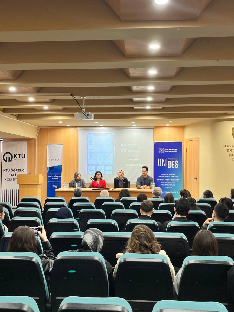 Kaliteden sorumlu Rektör Yardımcımız Prof. Dr. Ali Temiz, KTÜ Kalite Komisyonu ve KTÜ Öğrenci Kalite Komisyonu üyelerinin de hazır bulunduğu etkinlikte öğrencilerin eğitim-öğretim, araştırma ve idari süreçlerin iyileştirilmesindeki paydaşlıkları ve öğrenci kalite elçisi rolleri vurgulandı.