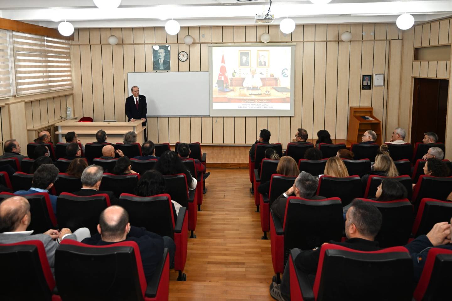 24 Aralık 2025 tarihinde Karadeniz Teknik Üniversitesi Orman Fakültesi Ahmet Şener Amfisinde Akademik Genel Kurul Toplantısı gerçekleştirildi. Toplantıya Karadeniz Teknik Üniversitesi Rektörü Prof. Dr. Hamdullah ÇUVALCI, Rektör Yardımcıları Prof. Dr. Ali TEMİZ ve Prof. Dr. Bünyamin ER, Orman Fakültesi Dekanı Prof. Dr. Ömer KARA ve Dekan Yardımcıları, Orman Mühendisliği Bölümü, Orman Endüstri Mühendisliği Bölümü, Peyzaj Mimarlığı Bölümü ve Yaban Hayatı Ekolojisi ve Yönetimi Bölümü Bölüm Başkanları ve yardımcıları ve bölümlerin öğretim üyeleri katıldı.