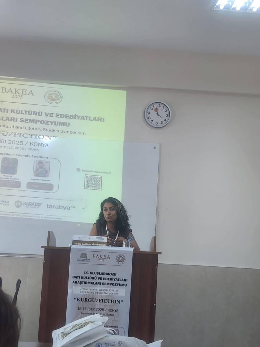 Bölümümüz Dr. Öğr. Üyesi Duygu İKİSİVRİ AKDEMİR, bu yıl 15-17 Eylül tarihlerinde 9'uncusunun Selçuk Üniversitesi (Konya/Türkiye) ev sahipliğinde düzenlendiği IX. Uluslararası Batı Kültürü ve Edebiyatları Araştırmaları Sempozyumuna (9th International Western Cultural and Literary Studies Symposium)[BAKEA] adlı uluslararası sempozyuma katılmıştır. Sempozyumda Dr. Duygu İKİSİVRİ AKDEMİR, “Toprak Köleliğinin Yansımaları: Bir “Tabula Rasa” Olarak Golovlevlerin Aile Kurgusu” adlı çalışmasını sunmuştur.