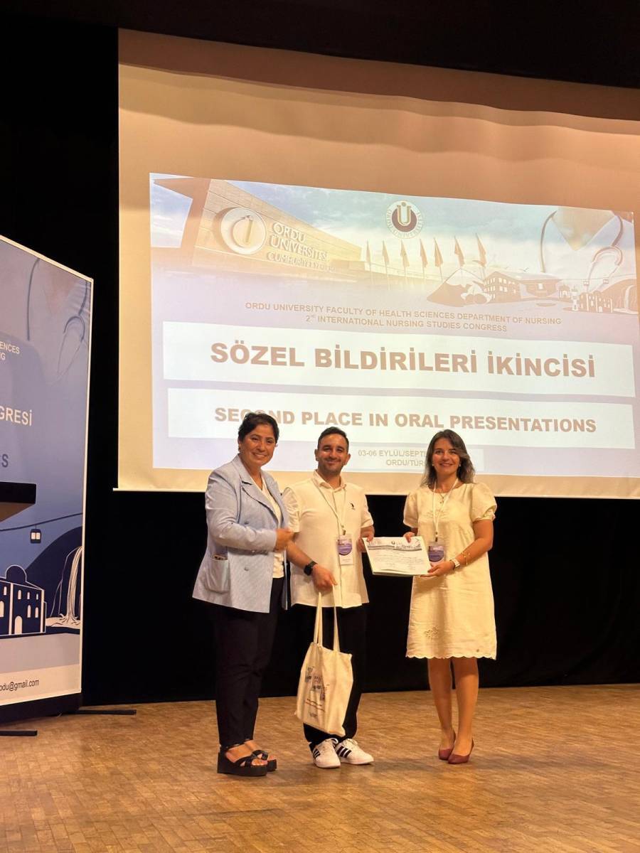 Enstitümüz İç Hastalıkları Hemşireliği Anabilim Dalı Öğretim Üyesi Doç. Dr. Seçil GÜLHAN GÜNER, Enstitümüz İç Hastalıkları Hemşireliği Anabilim Dalı Tezli Yüksek Lisans öğrencisi Bahrican GÜVEN ve Enstitümüz Hemşirelik Anabilim Dalı Doktora öğrencisi Müge TEZEL'in bilimsel çalışmaları, 3-6 Eylül 2025 tarihleri arasında Ordu'da düzenlenen “2. Uluslararası Hemşirelik Çalışmaları Kongresi”nde uluslararası düzeyde takdirle karşılandı. Kongreye sunulan 129 bildiri arasından yapılan titiz değerlendirme sonucunda araştırma ekibi, “The 2nd Best Oral Presentation Award” (En İyi İkinci Sözel Bildiri Ödülü)'nün sahibi oldu. Bu prestijli ödül, sunulan bildirinin bilimsel niteliğini ve hemşirelik alanına sunduğu katkıyı uluslararası arenada teyit etmektedir. Araştırma ekibini kutlar, başarılarının devamını dileriz.