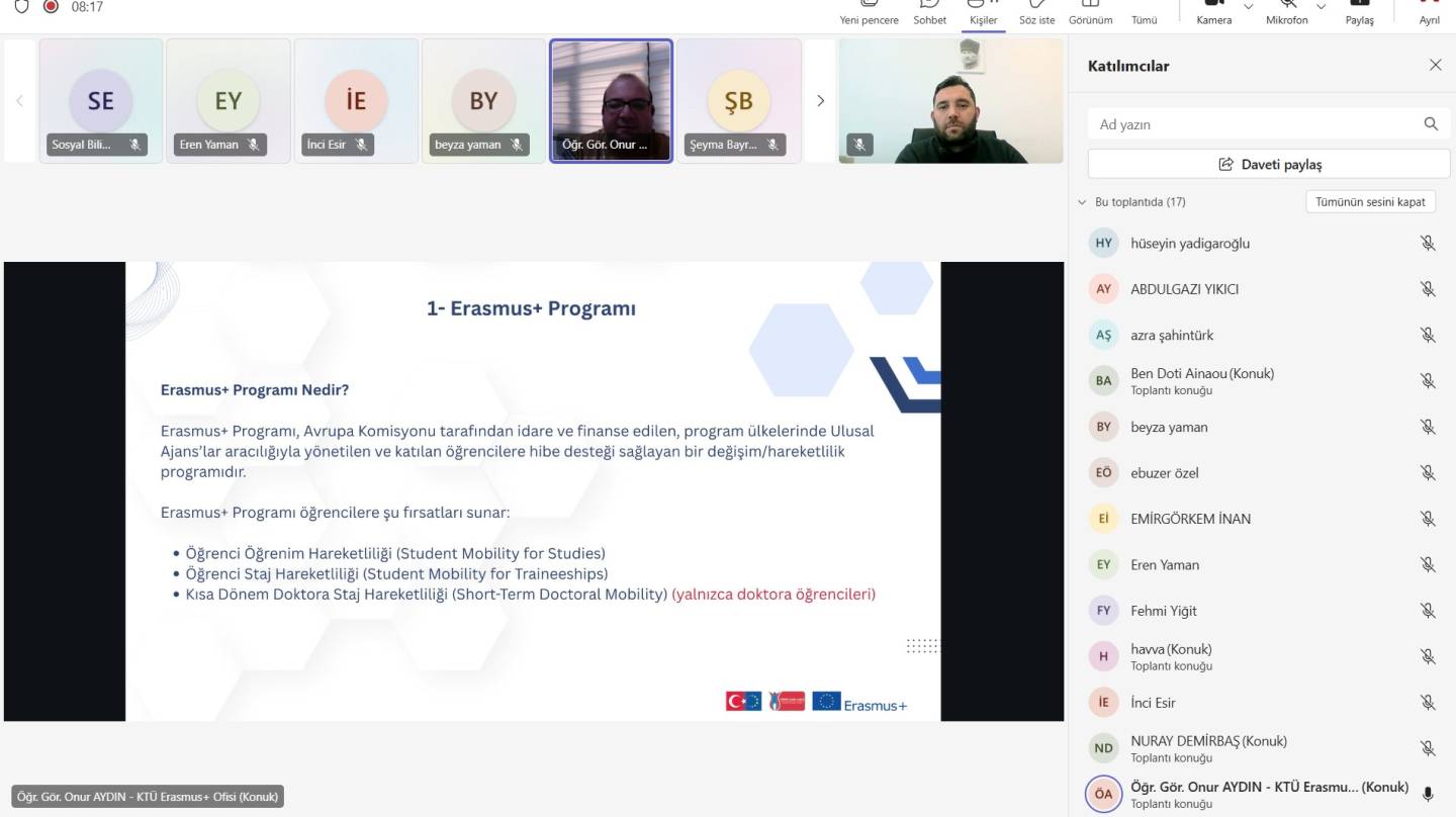 Enstitümüz tarafından Üniversitemiz Değişim Programları Koordinatörlüğünün katkılarıyla 29 aralık 2025 tarihinde çevrimiçi olarak "Erasmus+ Öğrenci ve Personel Hareketlilikleri Bilgilendirme Toplantısı" isimli etkinlik düzenlendi. Dış İlişkiler Genel Koordinatörlüğü, Değişim Programları Koordinatörlüğü Erasmus+ ekibinden Öğr. Gör. Onur Aydın etkinlik kapsamında lisansüstü öğrencilere ve akademisyenlere yönelik Erasmus Öğrenim Hareketlilikleri ve Staj Hareketleri hakkında bilgiler verdi.