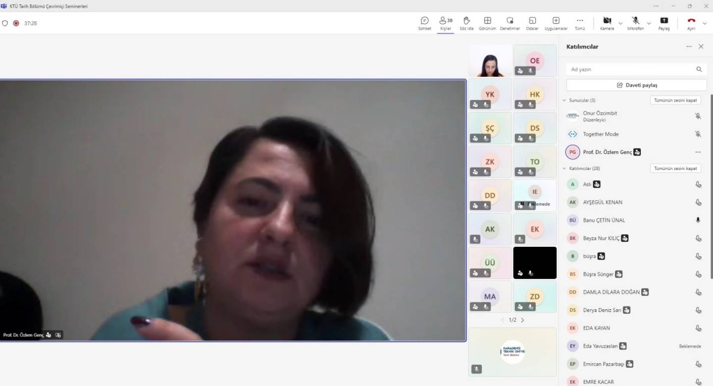 15.10.2025 tarihinde saat 20:00'da On Dokuz Mayıs Üniversitesi hocalarından Prof. Dr. Özlem Genç'in sunumu ile Ortaçağ Avrupası'nda Sosyal Hayat adlı çevrimiçi seminer KTÜ tarih bölümü hocaları ve öğrencilerinin de katılımı ile gerçekleştirilmiştir.