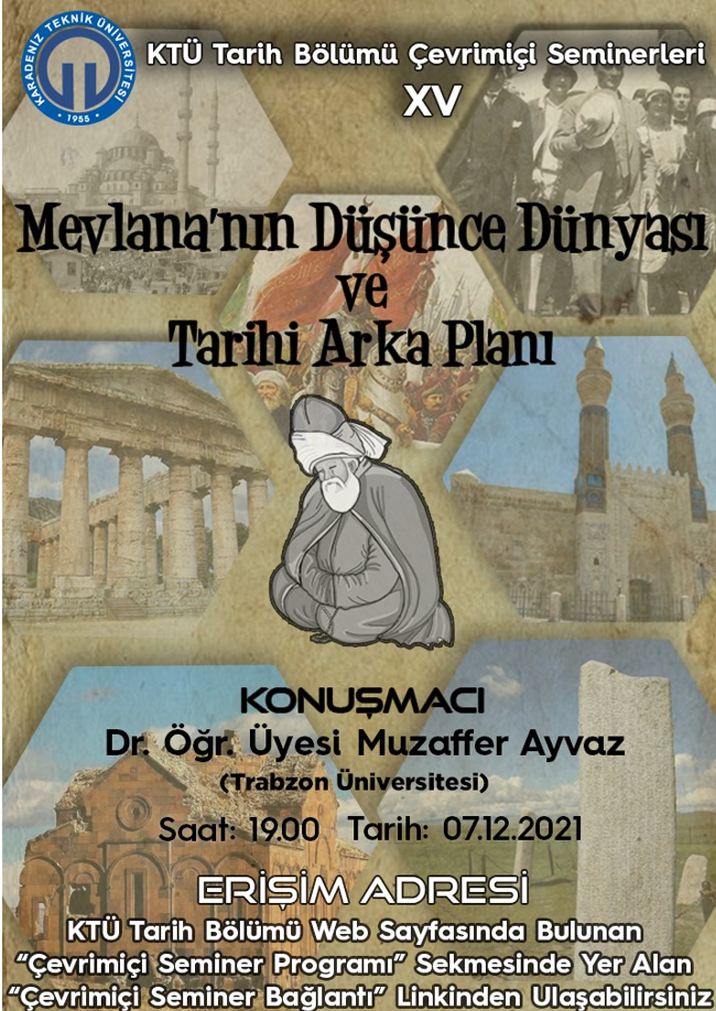 KTÜ Tarih Bölümü Çevrimiçi Seminerleri: "Mevlana'nın Düşünce Dünyası ve Tarihi Arka Planı" (07.12.2021)