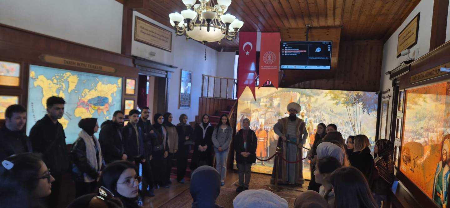 Bölümümüz tarafından 04.12.2025 tarihinde düzenlenen gezi kapsamında öğrencilerimiz; Atatürk Köşkü, Kanuni Evi ve Edebiyat Müzesi Kütüphanesi’ni ziyaret ederek şehrimizin kültürel ve tarihi mirasını yakından tanıma fırsatı buldu.
