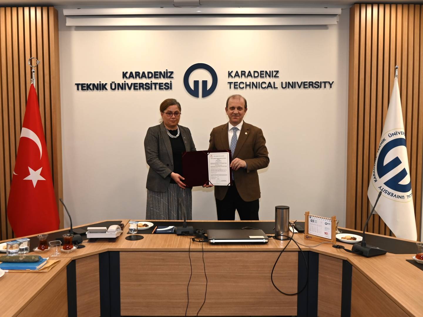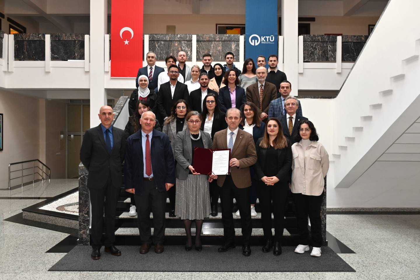 İLAFAR’a takdim edilen bu belge hem KTÜ’nün hem de İLAFAR’ın uluslararası tanınırlığına çok önemli bir katkıda bulunacak olup merkez bünyesinde yürütülen çalışmalar, KTÜ’nün, Araştırma Üniversitesi statüsüne yükselmesi sürecine önemli somut katkılar sağlayacaktır. İLAFAR akademik ve idari personelini tebrik eden Rektörümüz Prof. Dr. Hamdullah ÇUVALCI, başarılı çalışmalarının devamını diledi.