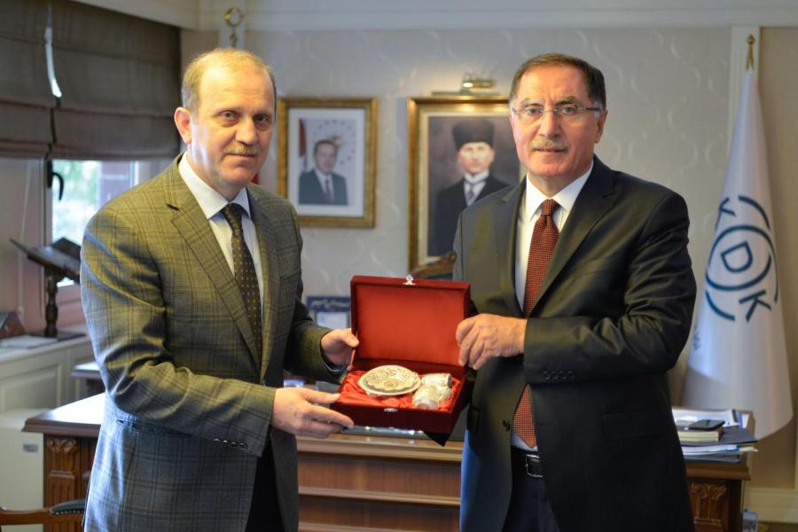 Rektörümüz Prof. Dr. Hamdullah ÇUVALCI, Ankara’da sürdürdüğü yoğun temasları kapsamında, Kamu Denetçiliği Kurumu (KDK) Başdenetçisi (Ombudsman) ve aynı zamanda Üniversitemiz İktisadi ve İdari Bilimler Fakültesi’nde Öğretim Görevlisi olarak hizmet vermiş olan Şeref MALKOÇ’u, makamında ziyaret etti.