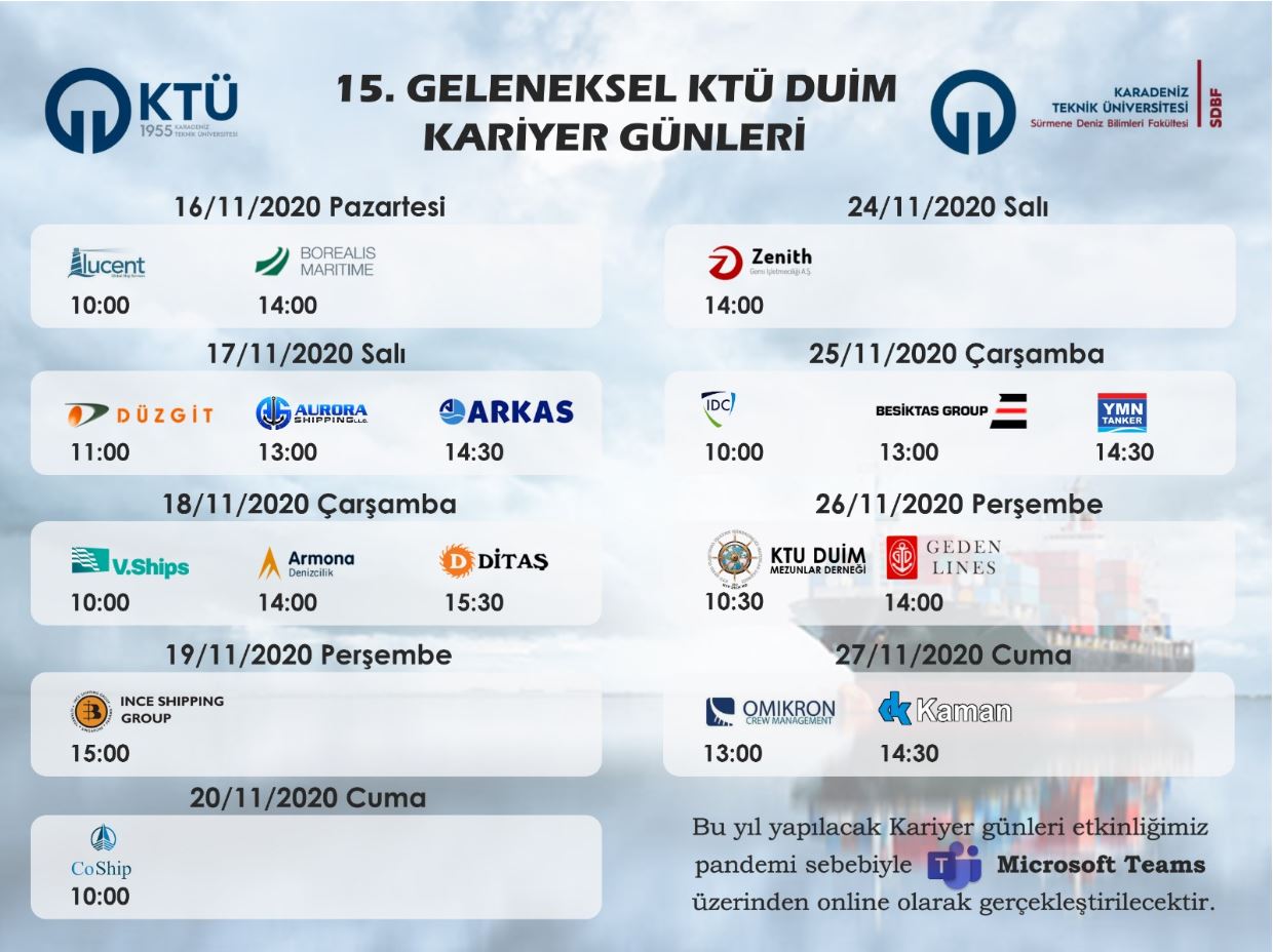 Üniversitemiz Deniz Ulaştırma İşletme Mühendisliği 15. Geleneksel Kariyer Günleri 16-27 Kasım 2020 Tarihlerinde Gerçekleştirilecek
