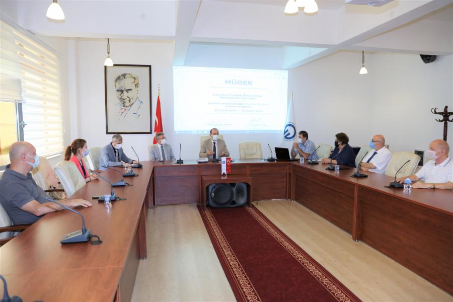 Üniversitemiz Mühendislik Fakültesi bünyesinde yer alan bölümlere ait programlar için Mühendislik Eğitim Programları Değerlendirme ve Akreditasyon Derneği (MÜDEK) tarafından değerlendirme ve akreditasyon çalışmaları gerçekleştirilmektedir. Bu saikle Üniversitemiz Mühendislik Fakültesi; Bilgisayar, Elektrik-Elektronik, Endüstri, Harita, İnşaat, Jeofizik, Jeoloji, Maden, Makine, Metalurji ve Malzeme Mühendisliği Bölümleri adına akreditasyon başvuru ve değerlendirme süreci boyunca aktif rol alan personelimize, Rektörümüz Prof. Dr. Hamdullah ÇUVALCI başkanlığında, Rektörlük Senato Salonu’nda düzenlenen bir törenle teşekkür belgeleri takdim edildi. Törene, Rektör Yardımcılarımız; Prof. Dr. Akif CİNEL, Prof. Dr. Halil İbrahim OKUMUŞ ve Prof. Dr. Cemil RAKICI da iştirak etti.