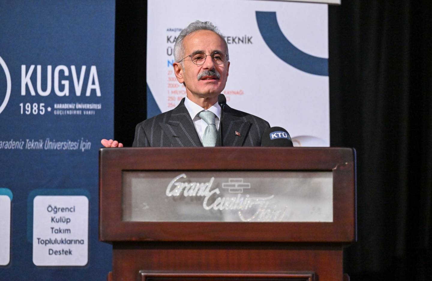 Gecede konuşan T.C. Ulaştırma ve Altyapı Bakanı Abdulkadir URALOĞLU, Karadeniz Teknik Üniversitesi İnşaat Mühendisliği Bölümü mezunu olduğunun altını çizerek, “Mühendislikten sağlığa, sosyal bilimlerden teknolojiye kadar birçok alanda ülkemize nitelikli mezunlar kazandıran Üniversitelerimiz, bilim üreten kurumlar olmasının yanında aynı zamanda Türkiye’nin ihtiyaç duyduğu insan kaynağını yetiştiren yapılardır. KTÜ, bu yönüyle örnek bir yükseköğretim kurumudur. Böylesine kıymetli bir Üniversitenin mezunu olmaktan büyük bir mutluluk duyuyorum.” dedi.