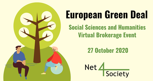 "Yeşil Mutabakat" çağrısında "Alan 10: İklim Nötr ve Sürdürülebilir Avrupa'ya Geçişte Vatandaşların Güçlendirilmesi" altında yer alan Sosyo-Ekonomik ve Beşeri Bilimler Alanı ile ilintili aşağıdaki başlıklara yönelik sanal proje pazarı etkinliği Net4Society Projesi kapsamında 27 Ekim 2020 tarihinde 10.00 – 15.30 (CET) saatleri arasında düzenlenecektir.