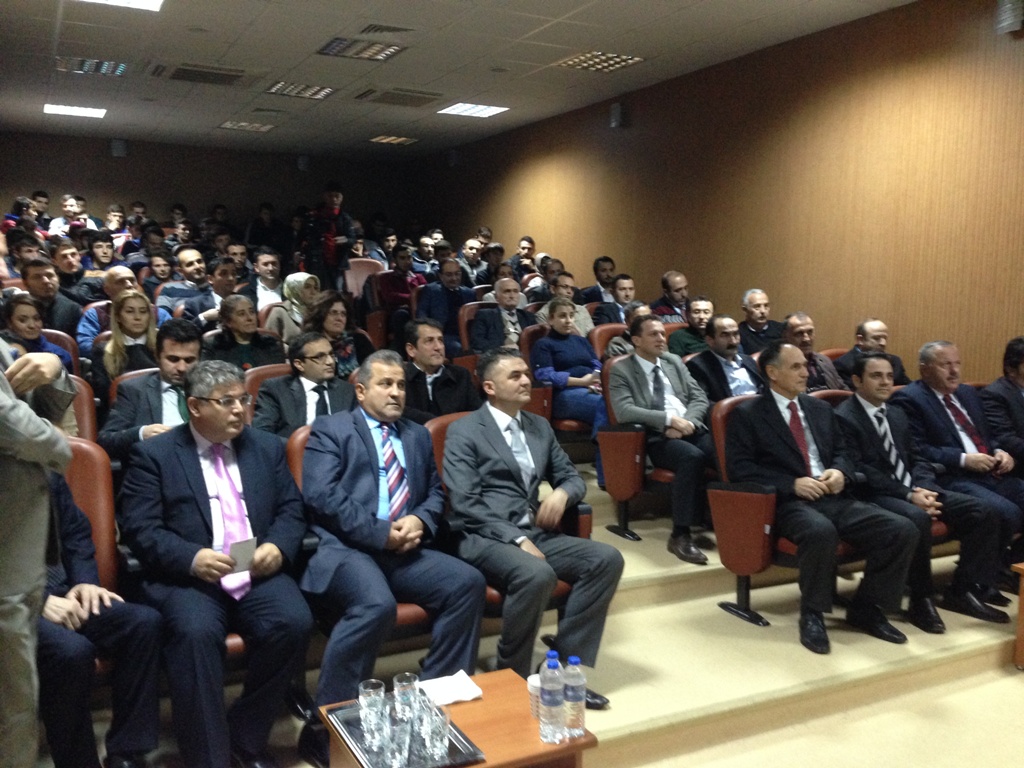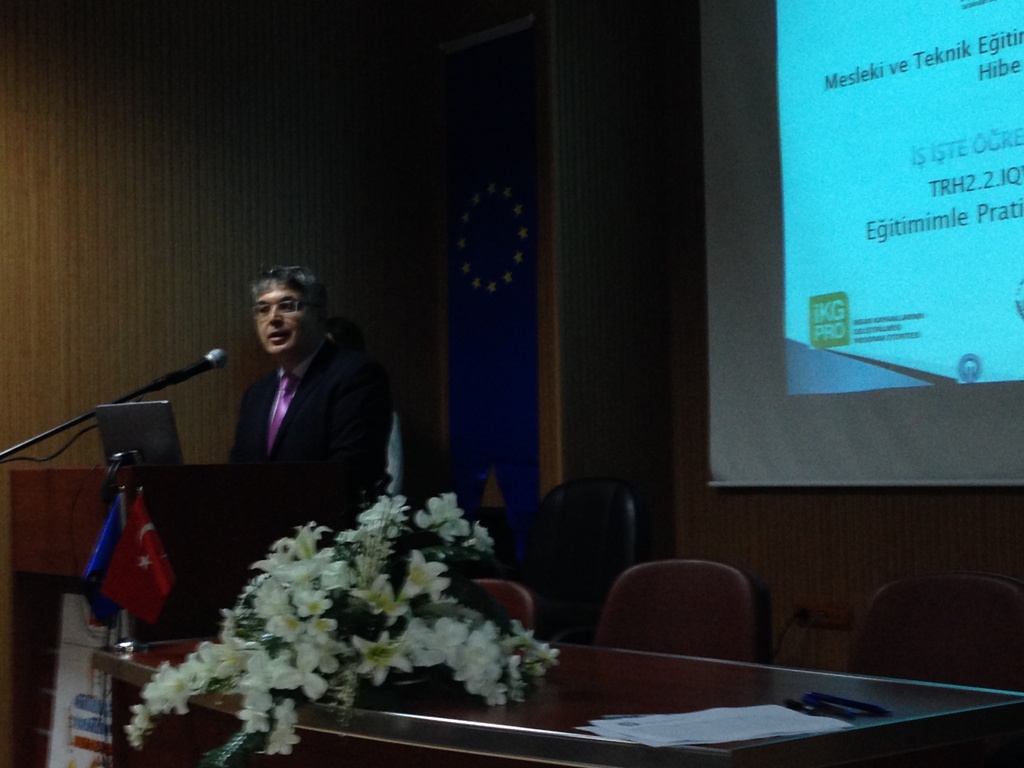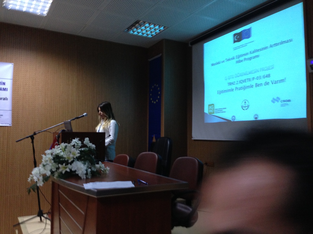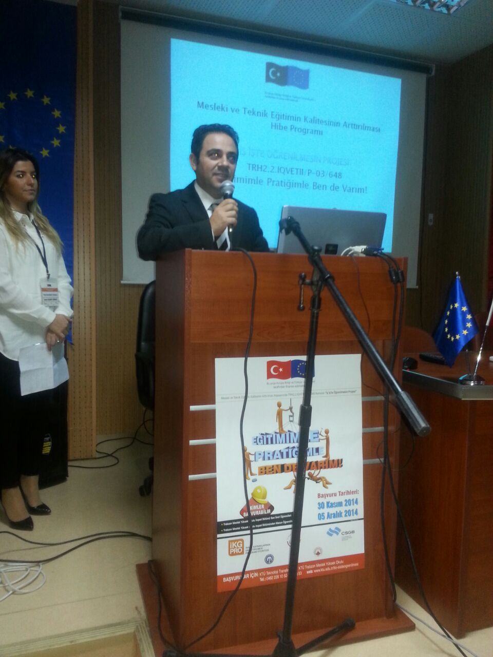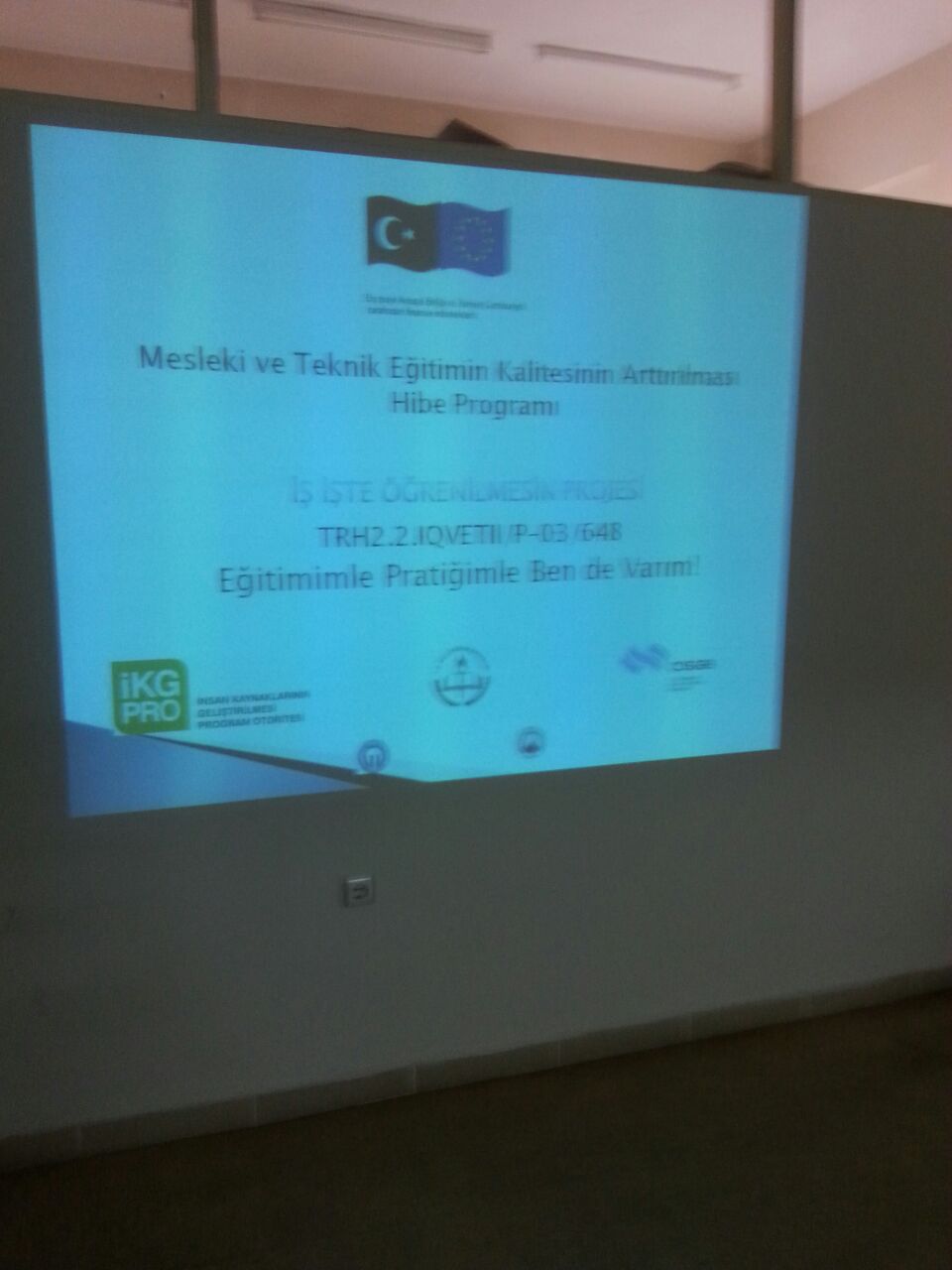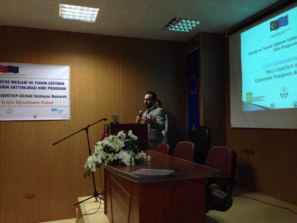 Çalışma ve Sosyal Güvenlik Bakanlığı–Avrupa Birliği Koordinasyon Dairesi Başkanlığı tarafından desteklenen “Türkiye’de Mesleki ve Teknik Eğitimin Kalitesinin Arttırılması Hibe Programı”kapsamında Karadeniz Teknik Üniversitesi Teknoloji Transfer Ofisi’nin yürüttüğü TRH2.2.IQVETII/P-03/648 referans numaralı “İş İş’te Öğrenilmesin” projesinin tanıtım toplantısı; Proje yürütücüsü Prof.Dr. Cüneyt ŞEN, Trabzon Meslek Yüksek Okulu Müdürü Prof.Dr. Mustafa K. DEĞER, Trabzon Ticaret ve Sanayi Odası Yönetim Kurulu Üyesi Şaban BÜLBÜL, Akçaabat Belediye Başkanı Şefik TÜRKMEN, Akçaabat İlçe Kaymakamı Soner ŞENEL, Proje Koordinatörü Yrd.Doç.Dr. Oktay YILDIZ, KTÜ Teknoloji Transfer Ofisi Başkanı Prof.Dr. Ali Osman BELDÜZ, değerli akademisyenlerimiz ve öğrencilerimizin katılımıyla 04.12.2014 perşembe günü saat 14:00'da Karadeniz Teknik Üniversitesi Trabzon Meslek Yüksek Okulu Toplantı Salonunda yapılmıştır.