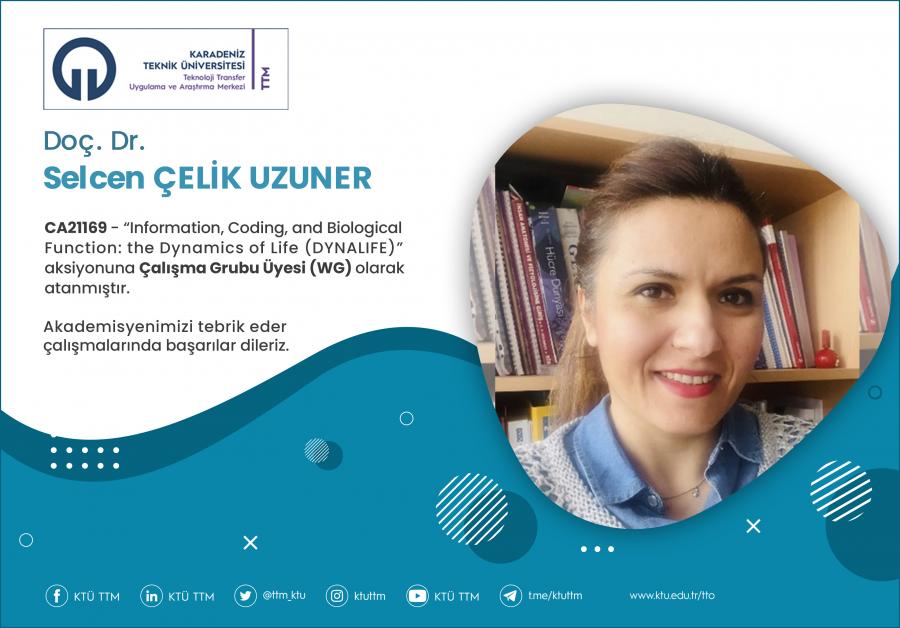 Üniversitemiz Fen Fakültesi Moleküler Biyoloji ve Genetik Bölümü öğretim üyesi Doç. Dr. Selcen ÇELİK UZUNER, COST Programı’nın “CA21169 - Information, Coding, and Biological Function: the Dynamics of Life (DYNALIFE) aksiyonuna Çalışma Grubu Üyesi (WG) olarak atanmıştır.