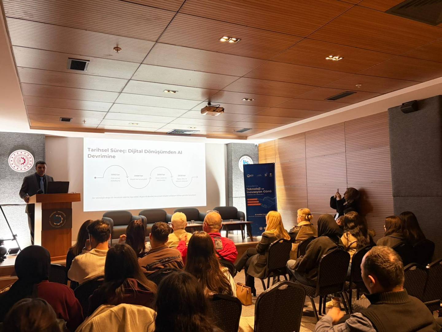 Etkinlik kapsamında gerçekleştirilen seminerlerden ilkinde, Karadeniz Teknik Üniversitesi öğretim üyelerinden Dr. Öğr. Üyesi Ercüment ÖZTÜRK’ün konuşmacı olarak yer aldığı “İş Dünyasında Yapay Zeka Kullanımı ve Fırsatlar” başlıklı sunum gerçekleştirildi. Seminerde yapay zekânın iş dünyasındaki kullanım alanları, işletmelere sağladığı verimlilik avantajları ve gelecekte ortaya çıkabilecek fırsatlar katılımcılarla paylaşıldı.