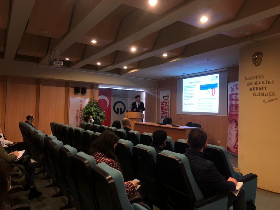 KTÜ Teknoloji Transferi Uygulama ve Araştırma Merkezi organizasyonuyla Trabzon Teknokent ve KTÜ Kariyer Merkezinin yer aldığı, Üniversitemiz ve bölge üniversitelerin araştırmacıları, Trabzon Teknokent Bölgesi'nde yer alan firma temsilcileri ve Üniversitemiz öğrencileri için Türk Patent ve Marka Kurumu Uzman Yrd. Volkan BERRAK tarafından;