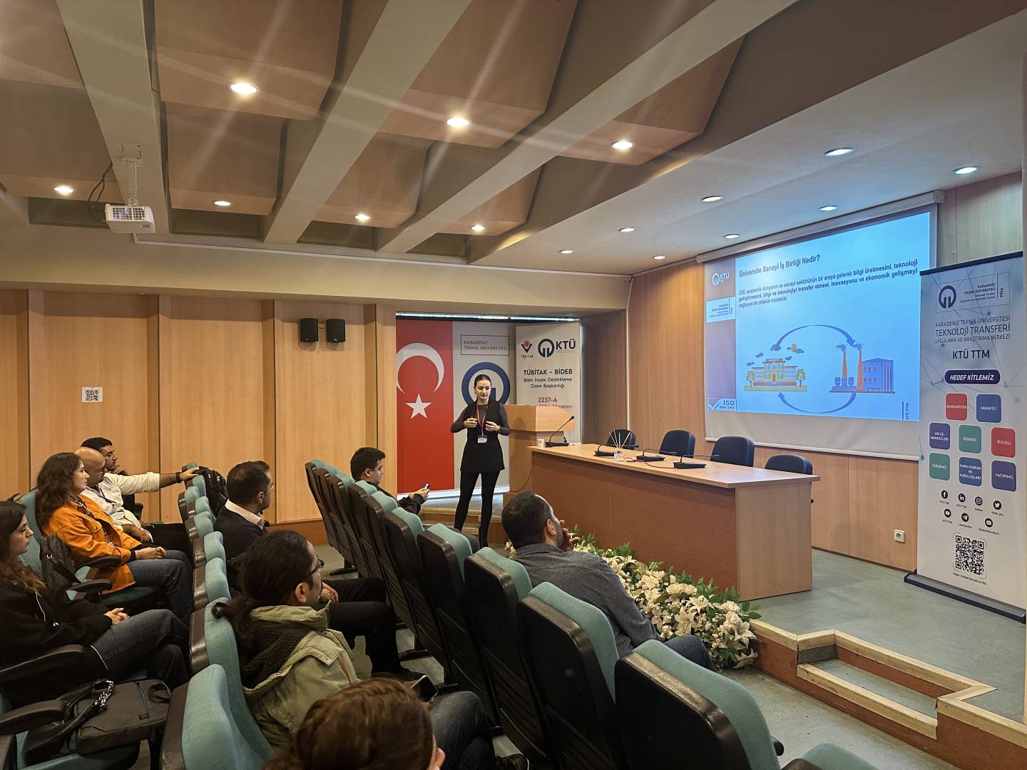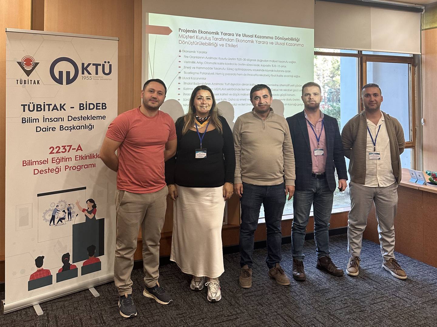 TÜBİTAK 2237-A Programı kapsamında, Dr. Öğr. Üyesi Uğur ŞEVİK yürütücülüğünde ve KTÜ Teknoloji Transferi Uygulama ve Araştırma Merkezi ev sahipliğinde düzenlenen “Sanayi Odaklı Ar-Ge Projeleri için TÜBİTAK 1505 Üniversite-Sanayi İş Birliği Destek Programı Başvuru ve Yazım Süreçleri” etkinliği, 3 farklı üniversite ve 6 farklı firmadan toplamda 22 kişinin katılımıyla gerçekleştirildi.