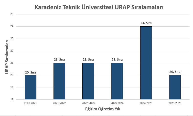 URAP'ın 2025-2026 Türkiye Sıralaması'nda Tıp Fakültesi olan ve Tıp Fakültesi olmayan üniversiteler olarak 2 ayrı sıralamanın yapıldığı listelerde 198 üniversite değerlendirildi. Tıp Fakültesi olan üniversitelerin sıralamalarında Karadeniz Teknik Üniversitesi 111 üniversite arasından 13. sırada yer alırken, özel üniversiteler dahil araştırma üniversiteleri içerisinde ilk 25 üniversitenin sıralandığı listede 4 basamak ilerleyerek 20. sırada yer aldı.