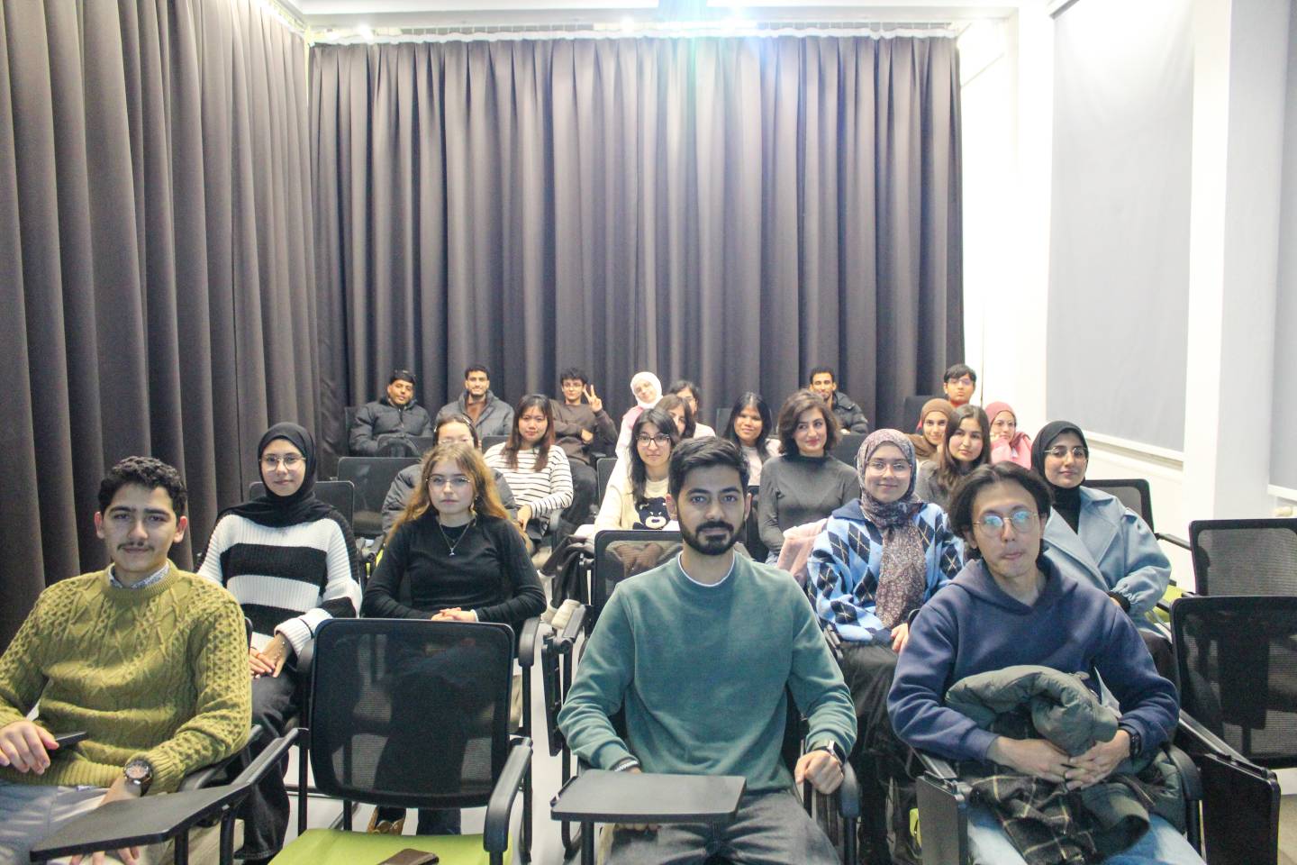 Üniversitemizde öğrenim gören uluslararası öğrenciler tarafından yürütülen Uluslararası Öğrenci Kulübü, Dış İlişkiler Ofisi etkinlik salonunda “Uluslararası Yılbaşı Akşamı” programı düzenledi. Farklı ülkelerden öğrencilerin yoğun katılım gösterdiği etkinlikte, kültürel paylaşımlar, müzik dinletileri ve çeşitli oyun etkinlikleri gerçekleştirildi. Katılımcılar kendi kültürlerini tanıtma fırsatı bularak, farklı coğrafyalardan gelen arkadaşlarıyla kaynaşma imkânı elde etti. Program kapsamında düzenlenen ikram bölümü ise etkinliğe renk kattı. Samimi ve sıcak bir atmosferde geçen organizasyon, öğrenciler arasında kültürlerarası etkileşimi güçlendirmeyi ve yeni yılın birlik, dayanışma ve dostluk içinde karşılanmasını amaçladı. Etkinlik, toplu fotoğraf çekimi ve iyi dilek temennileriyle sona erdi.