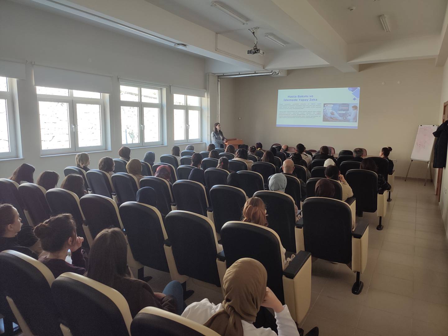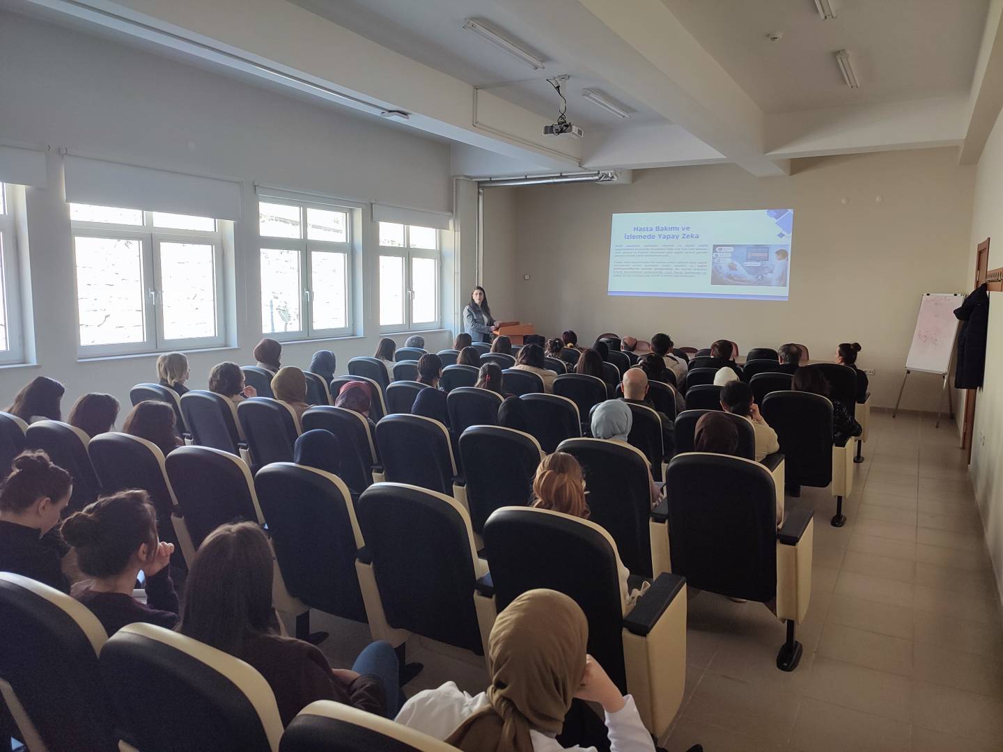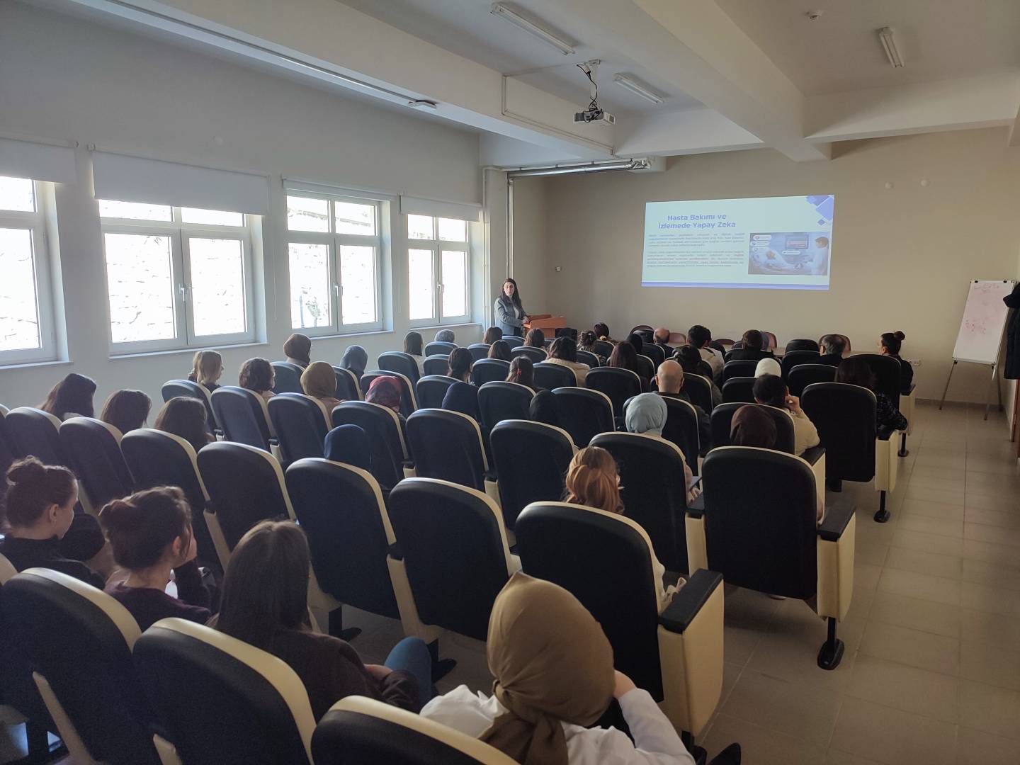 Etkinlikte, yapay zekâ teknolojilerinin sağlık alanında sunduğu fırsatlar ve disiplinlerarası çalışmaların önemi vurgulanırken, katılımcıların soruları ile interaktif bir ortamda gerçekleştirilen program verimli bir şekilde tamamlandı.